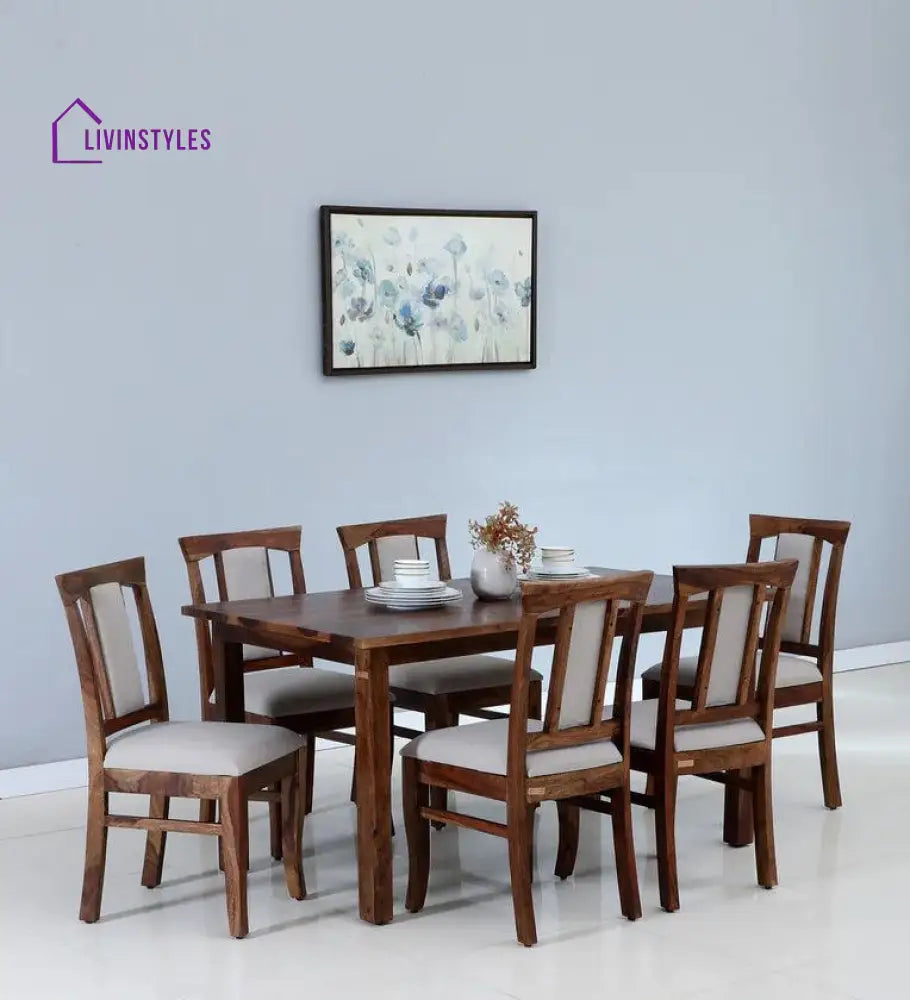 - The dining set is made from Sheesham wood, known for its durability and appealing natural grain.