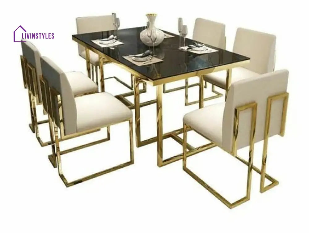 Margarita Black and Gold Elegance | 6 Seater Dining Table Set