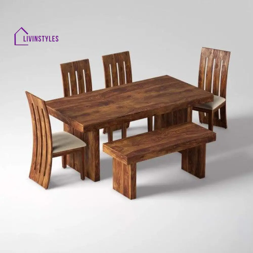 Sheesham Wood Dining Set Six Seater With Bench | Dining Room Furniture In Honey Finish