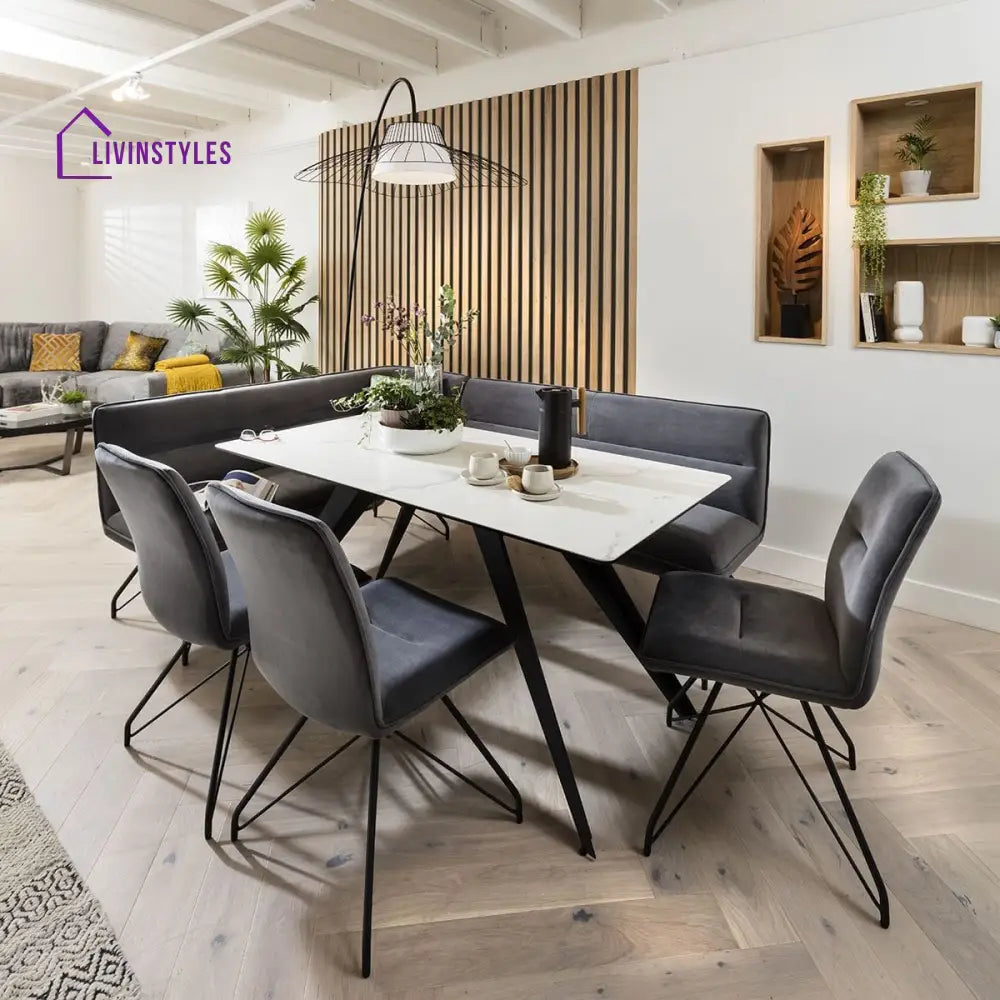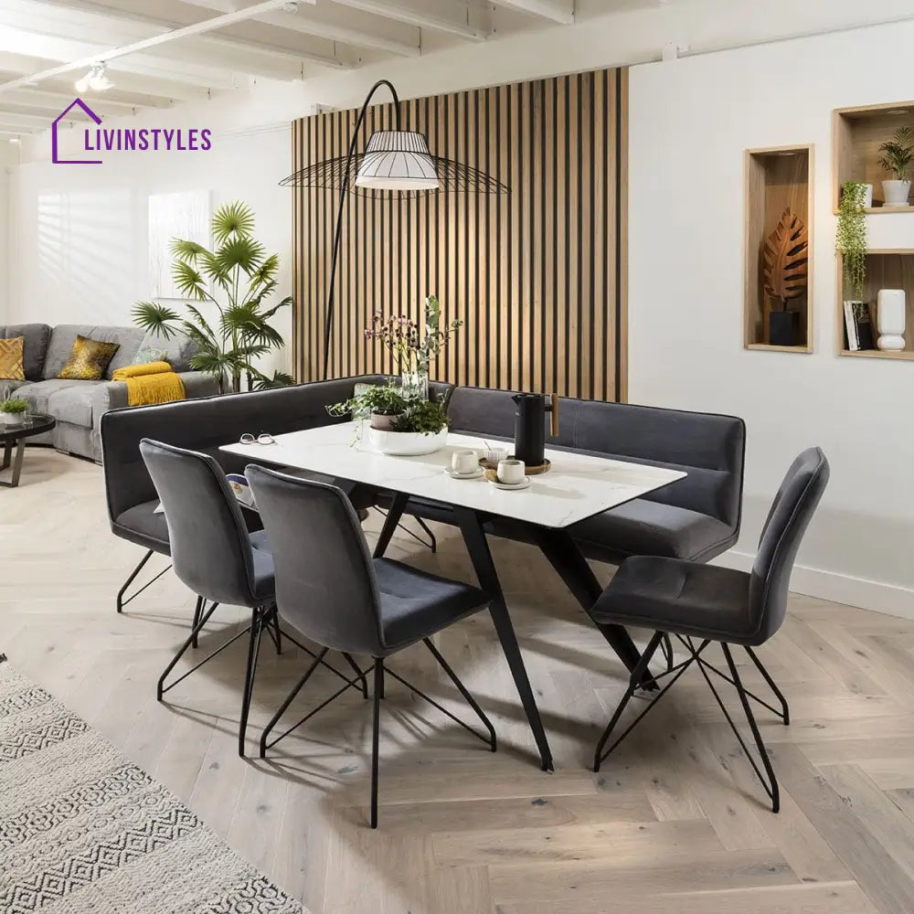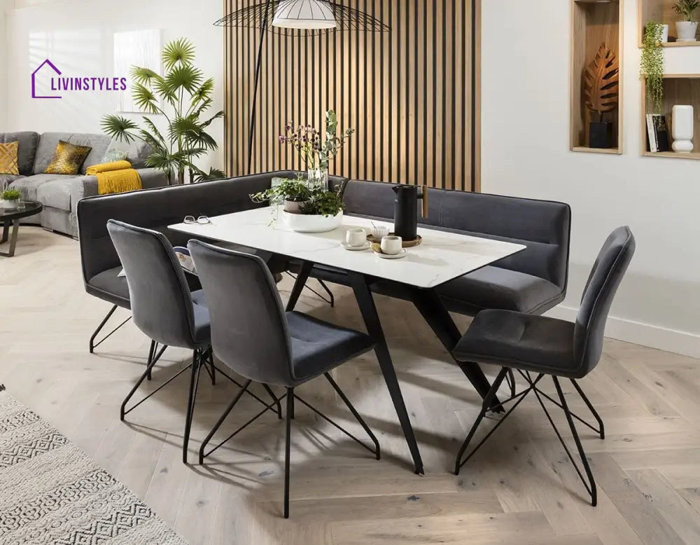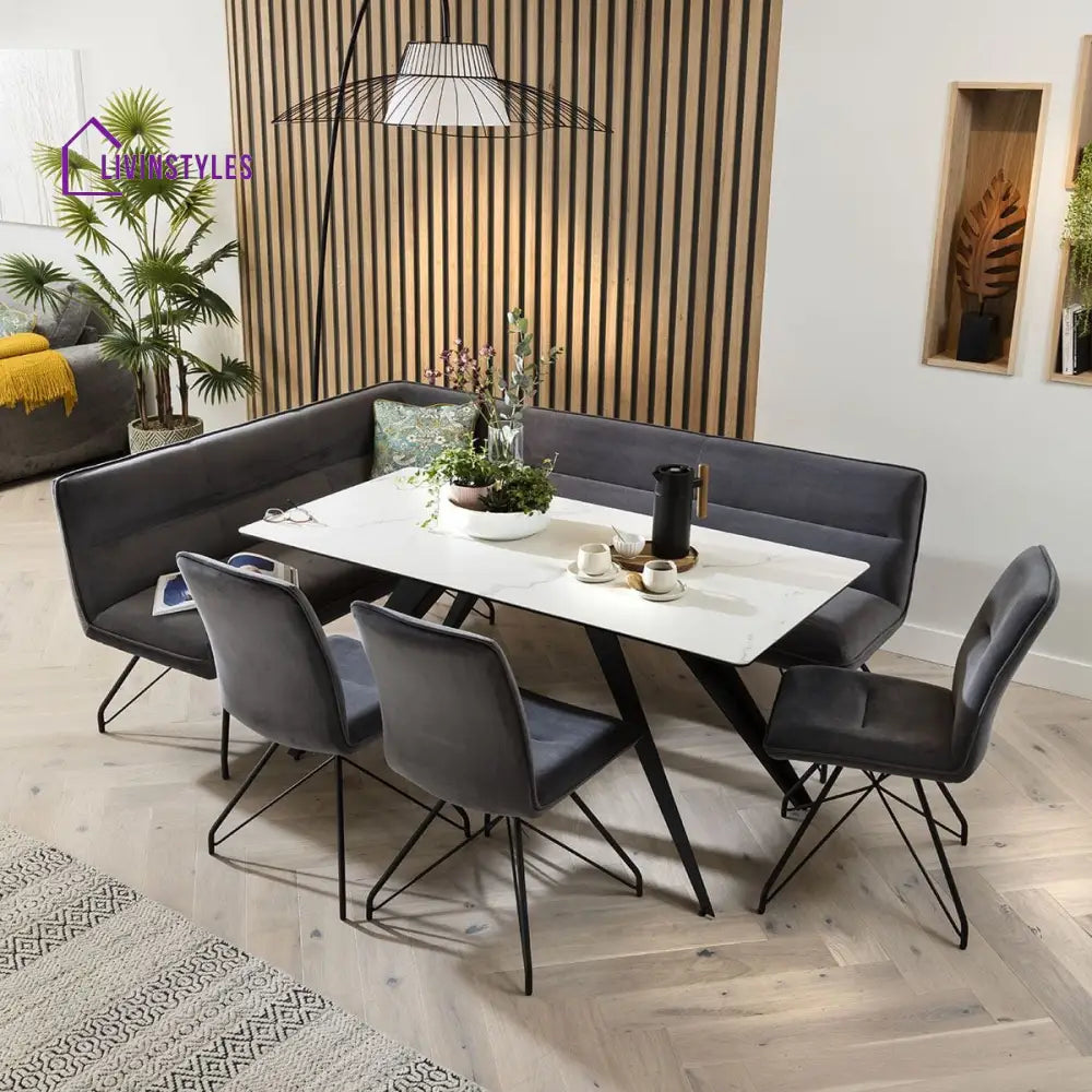 Set Includes: 1 Ceramic Marble Dining Table + 1 Corner Bench + 3 Chairs