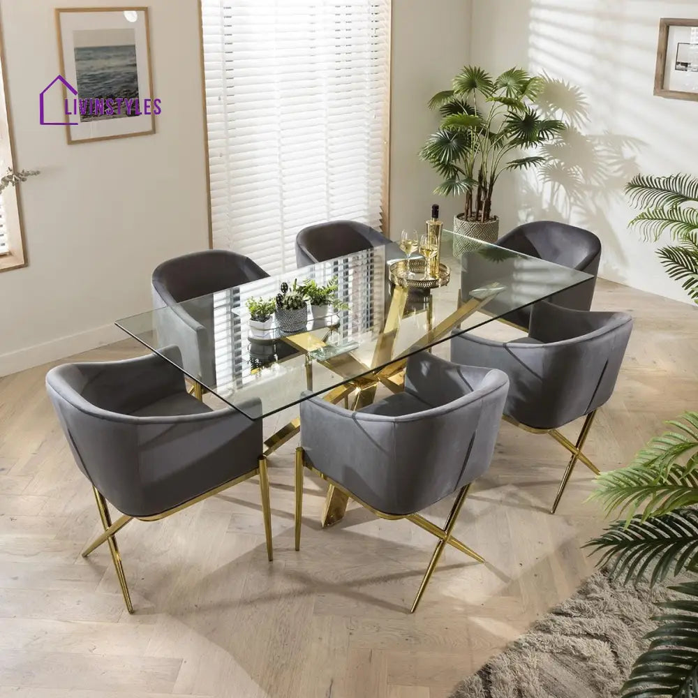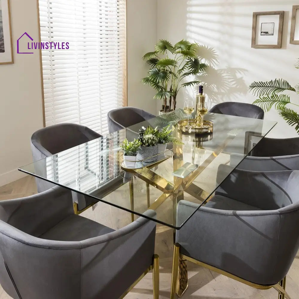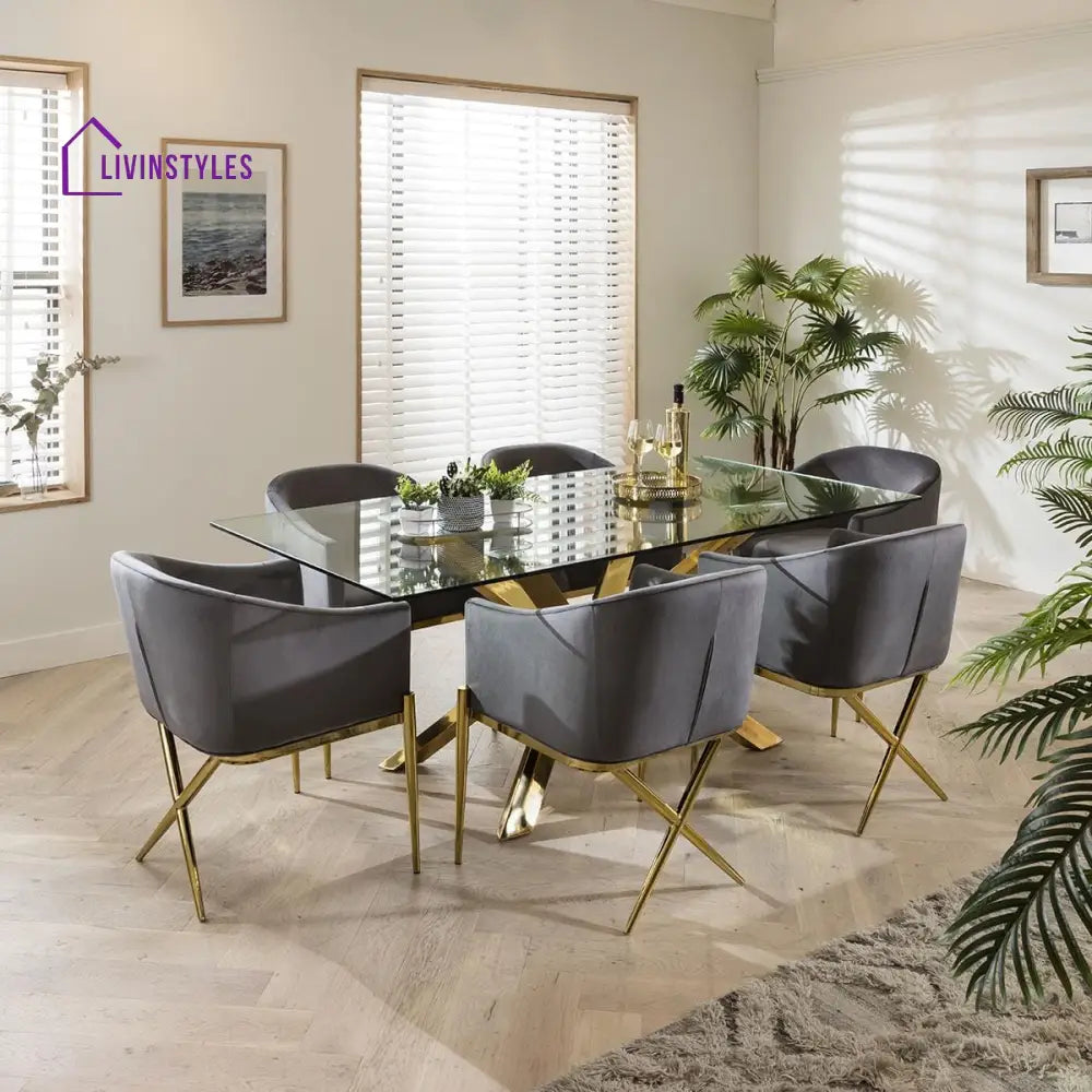Bring luxury and comfort to your dining room with this 6-Seater Dining Table Set, designed to combine elegance with everyday functionality. The set includes a spacious dining table paired with six expertly upholstered chairs in performance velvet, offering both style and long-lasting durability.