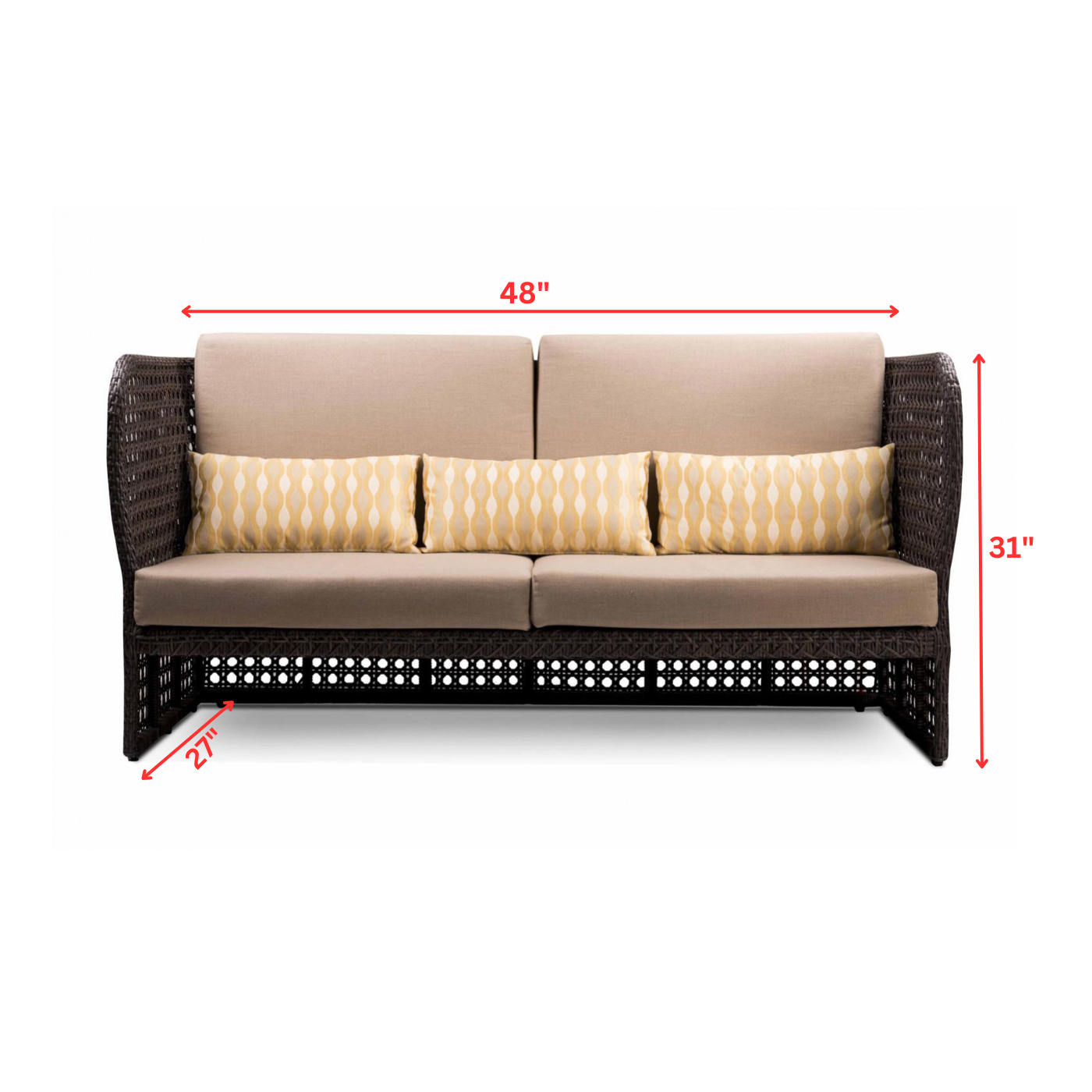 Two seater: Width 48 inch, D 27 inch, Height 31 inch