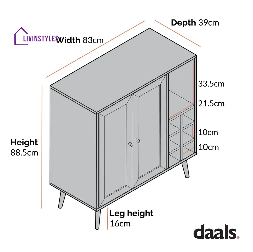 - Top open shelf: W 21.5 x D 36.5 x H 33.5 cm