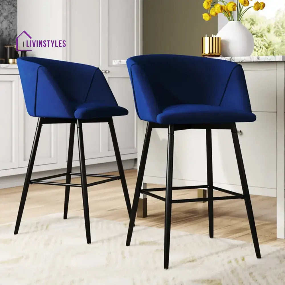 About the Product:This bar stool has clean lines and velvet upholstery that offer your kitchen island or dining table a glam look. The frames are made from engineered wood and metal, and built on flared legs for a contemporary artist look in your space. These foam-filled stools feature a bucket seat with a curved back, and they're upholstered in velvet in your choice of color. Also, they have built-in support bars at the bottom to keep your feet comfy while you kick back and enjoy a good meal or a glass of wine with friends. We also love that these stools are stain and rust-resistant, so they stand up to spill and ding.