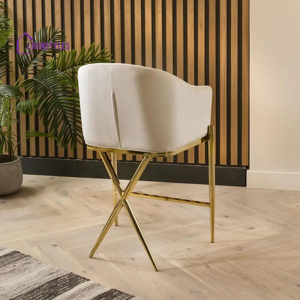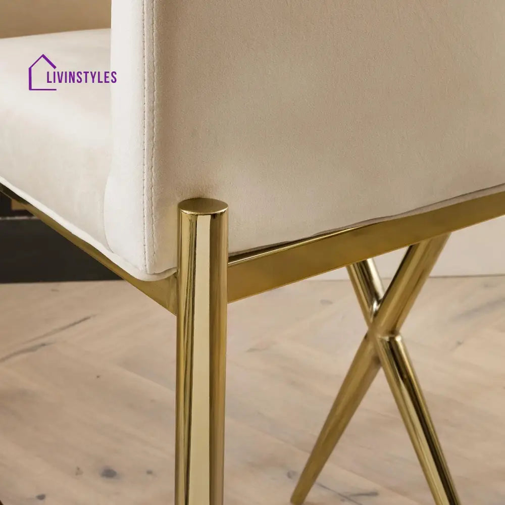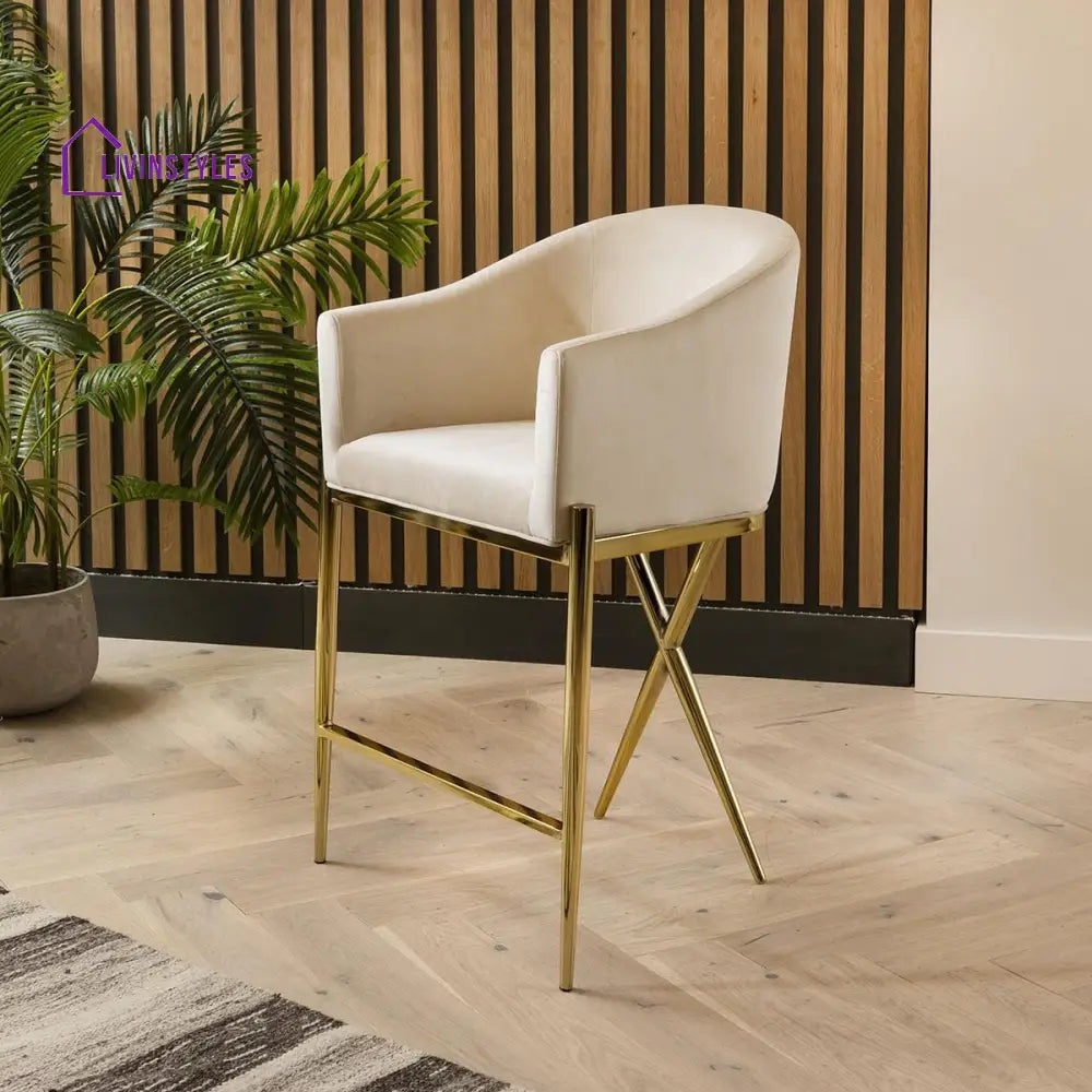 Glafira Bar Stool Cream Velvet Curved Back on Gold Legs