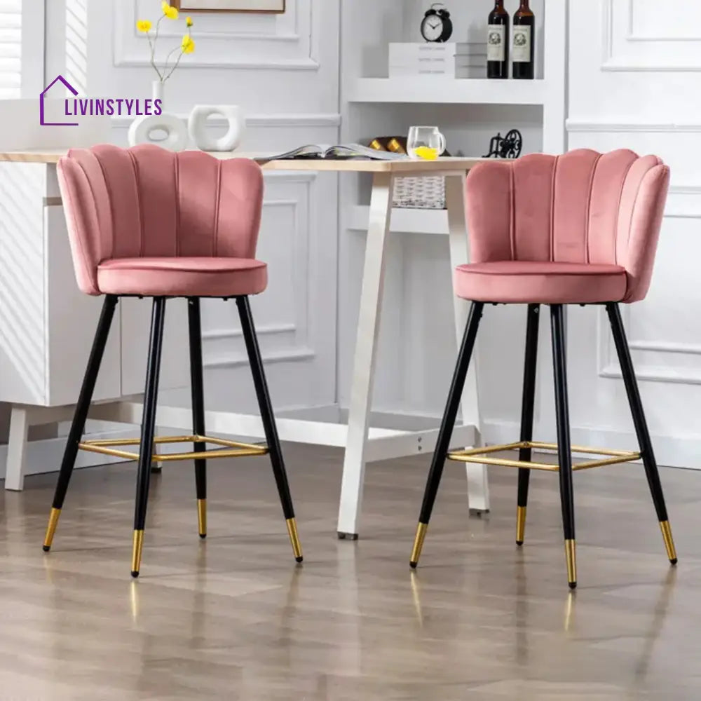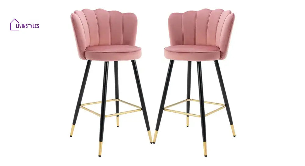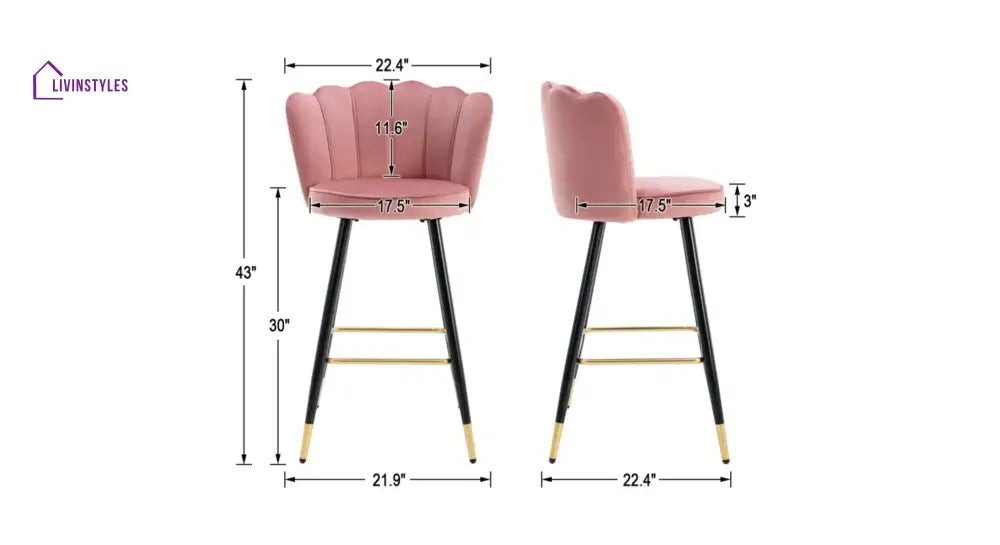 About the Product:This bar stool has clean lines and velvet upholstery that offer your kitchen island or dining table a glam look. The frames are made from engineered wood and metal, and built on flared legs for a contemporary artist look in your space. These foam-filled stools feature a bucket seat with a curved back, and they're upholstered in velvet in your choice of color. Also, they have built-in support bars at the bottom to keep your feet comfy while you kick back and enjoy a good meal or a glass of wine with friends. We also love that these stools are stain and rust-resistant, so they stand up to spill and ding.