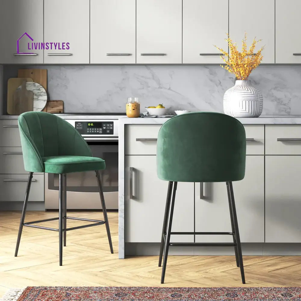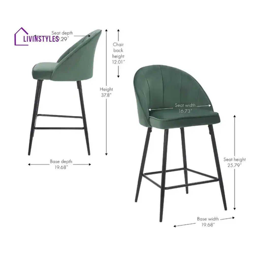 About the Product:This bar stool has clean lines and velvet upholstery that offer your kitchen island or dining table a glam look. The frames are made from engineered wood and metal, and built on flared legs for a contemporary artist look in your space. These foam-filled stools feature a bucket seat with a curved back, and they're upholstered in velvet in your choice of color. Also, they have built-in support bars at the bottom to keep your feet comfy while you kick back and enjoy a good meal or a glass of wine with friends. We also love that these stools are stain and rust-resistant, so they stand up to spill and ding.