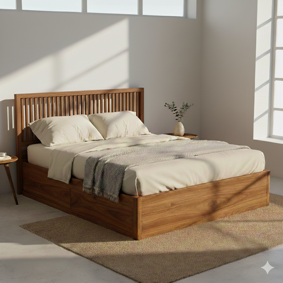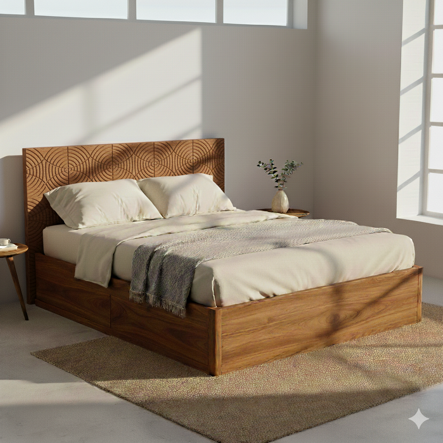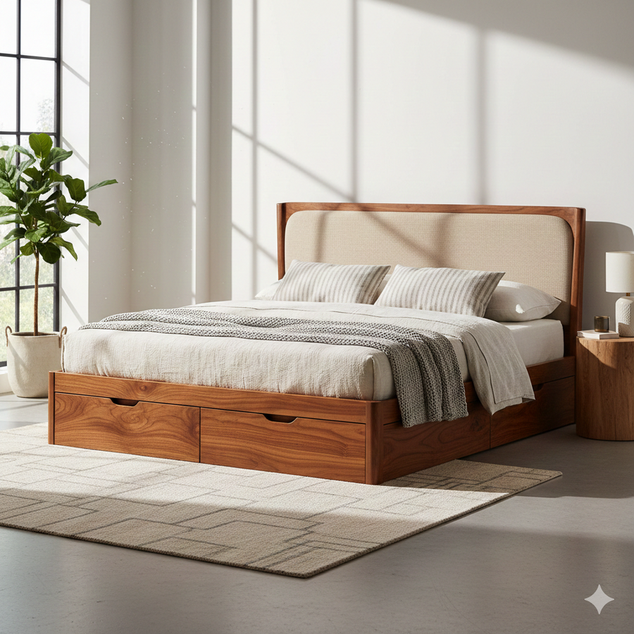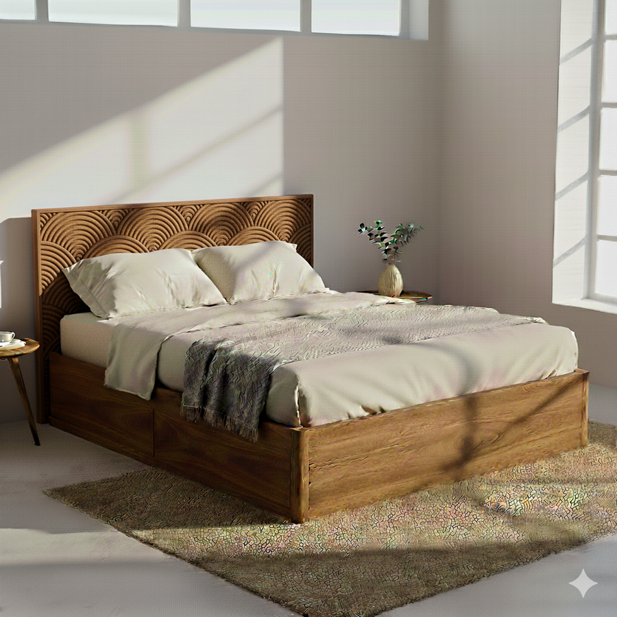 Kavya Solid Sheesham Wood Storage Bed with Drawer