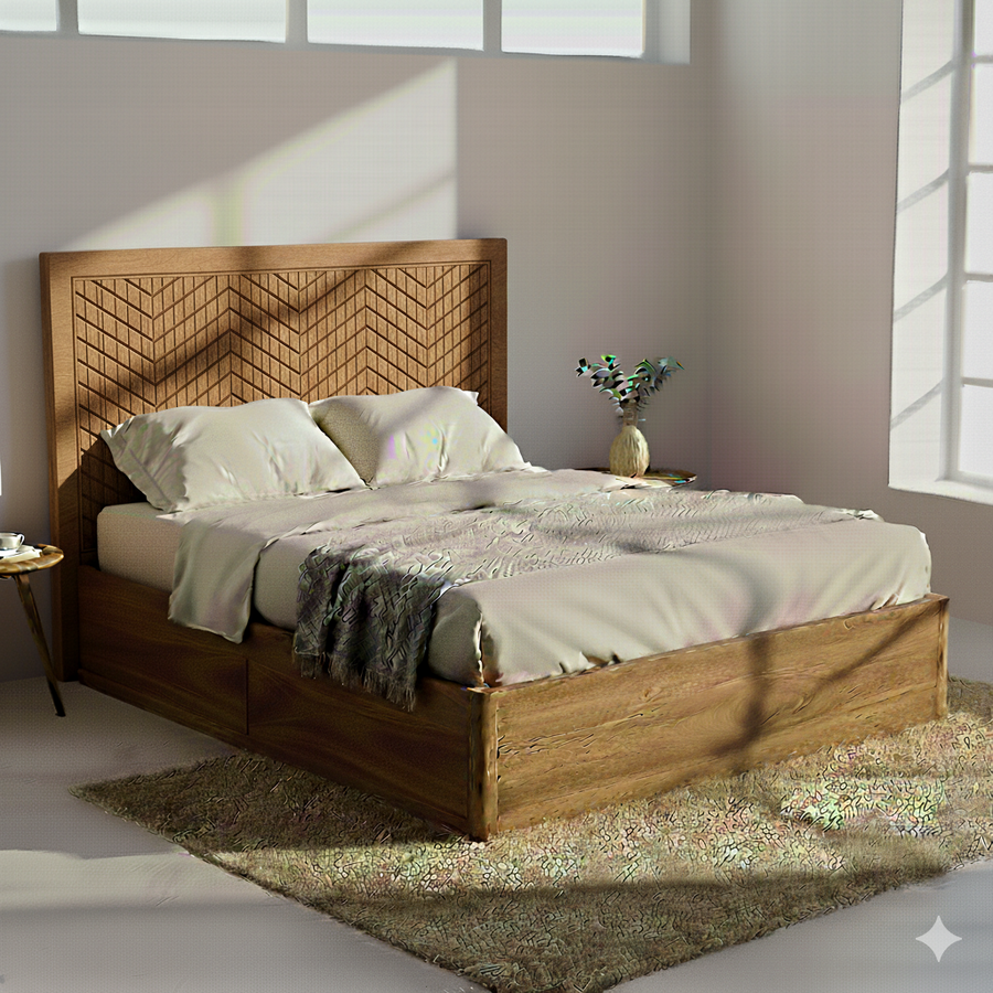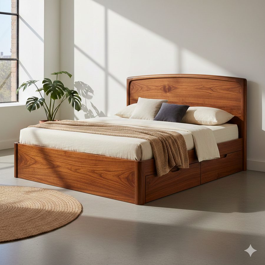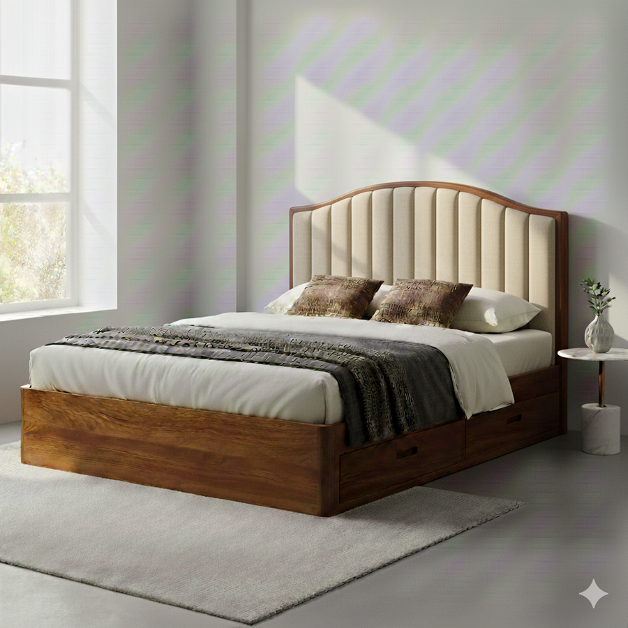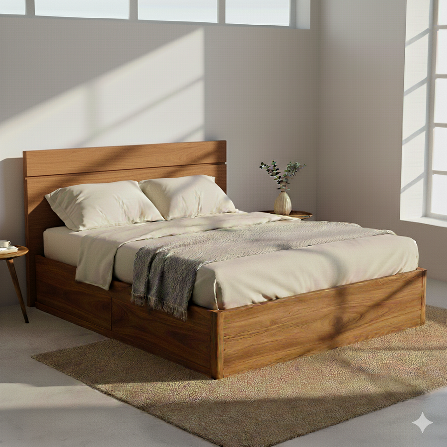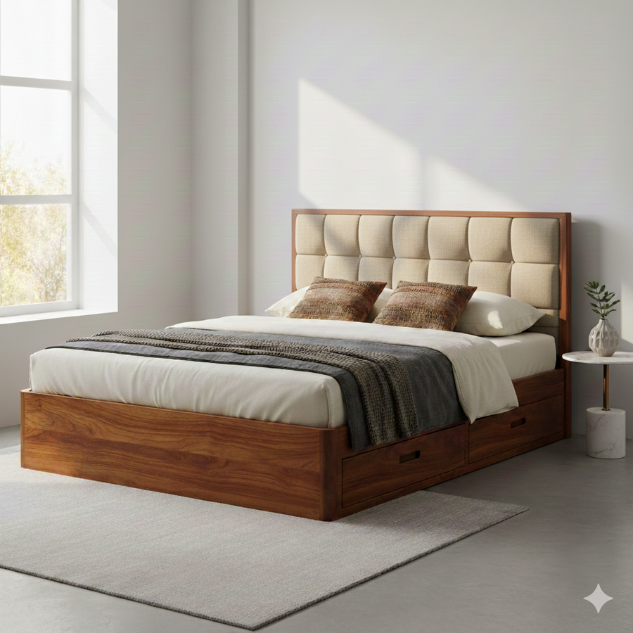 Kavya Solid Sheesham Wood Storage Bed with Drawer