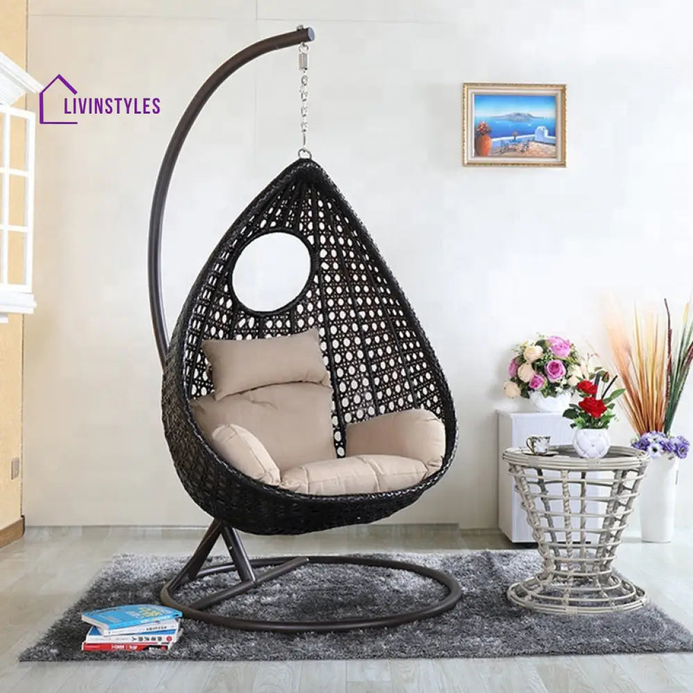 Discover serenity with our Indian-crafted Single Seater Wicker Swing with Stand. Handwoven for timeless elegance, its powder-coated frame ensures durability. Water-resistant, comfortable fabric enhances relaxation, creating a tranquil oasis. Elevate your outdoor space with this blend of artistry and comfort, designed to withstand the elements while offering moments of pure bliss.