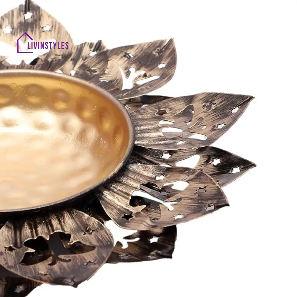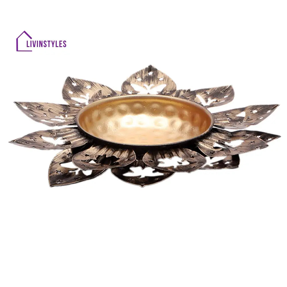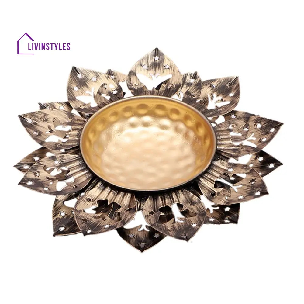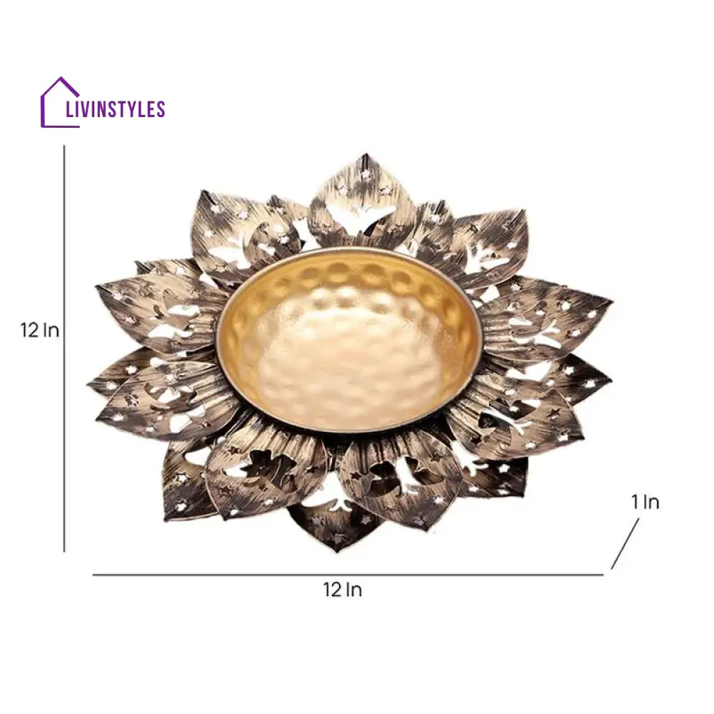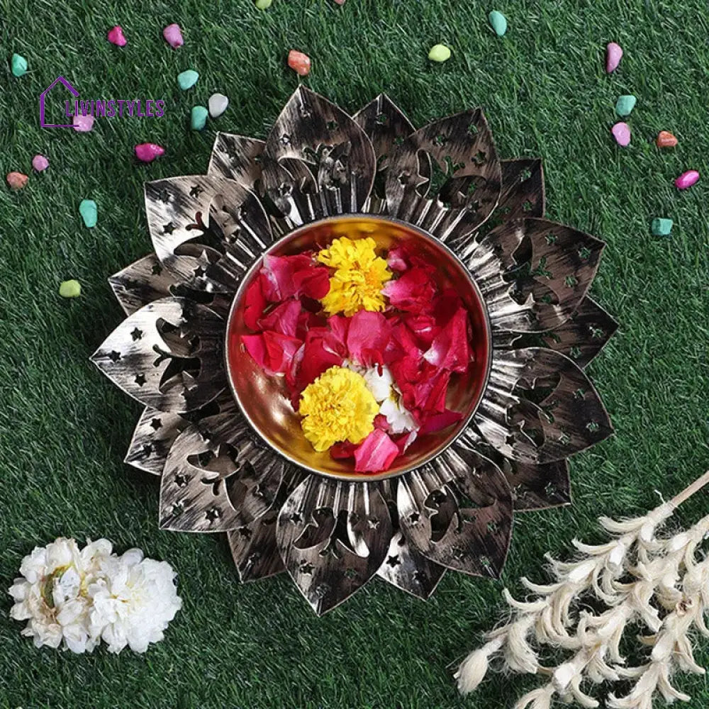 - Elegant Design: The Black & Gold Flower Cut Urli features an elegant and intricate flower cut design, adding a touch of sophistication to any setting.