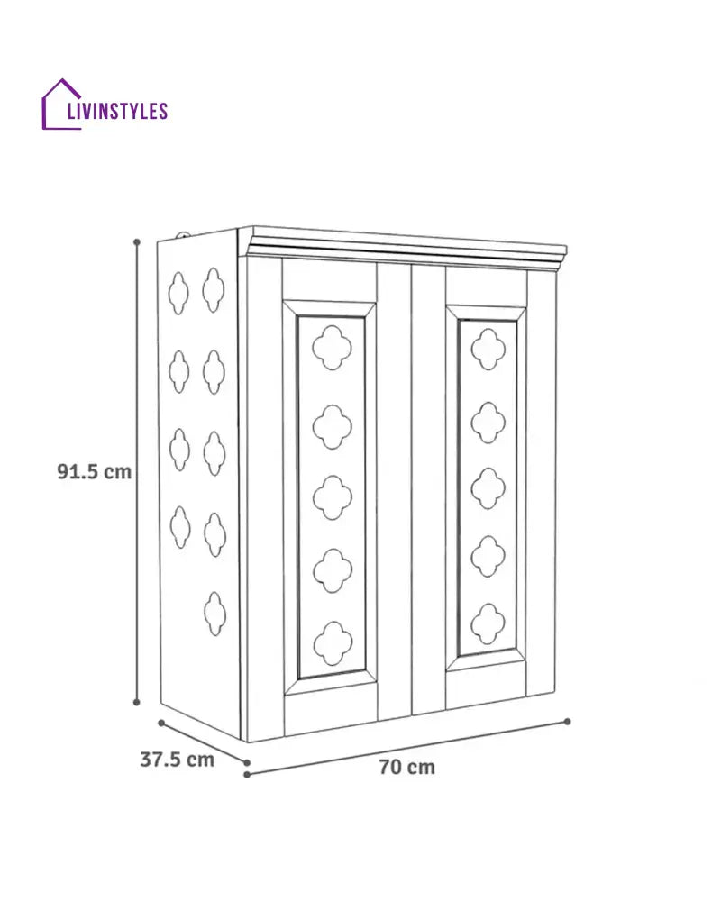 Elena - Traditional Pooja Mandir for Home with Doors, Brass Bells & Lamps | Handcrafted Wooden Home Temple