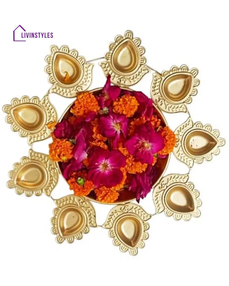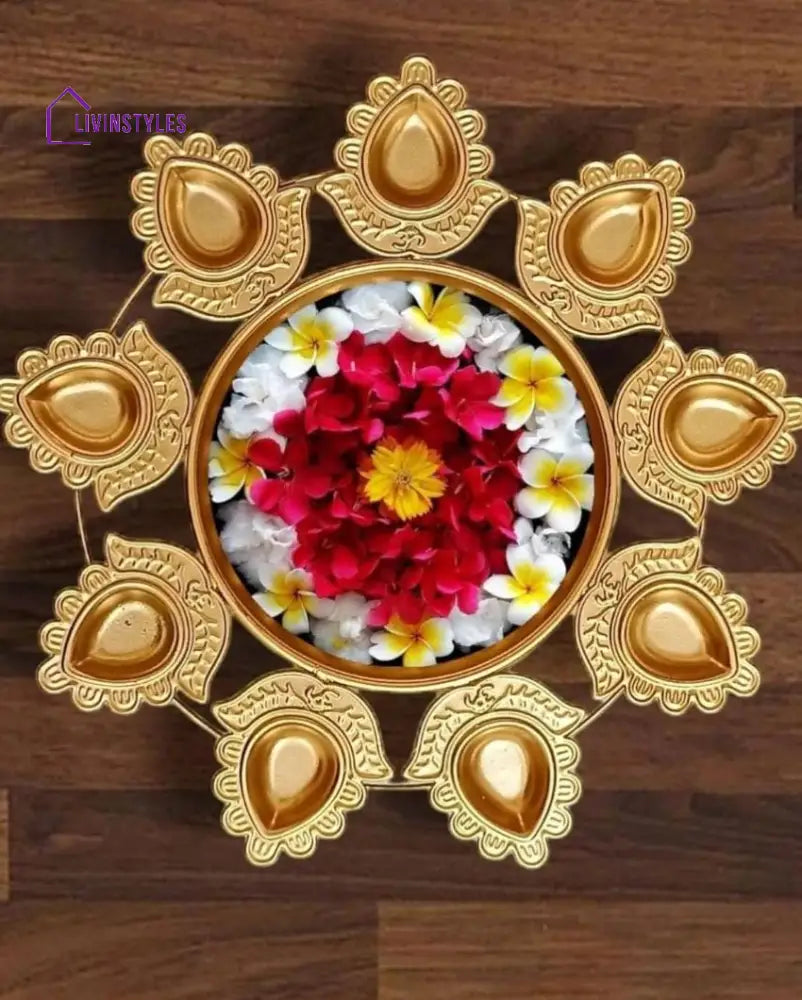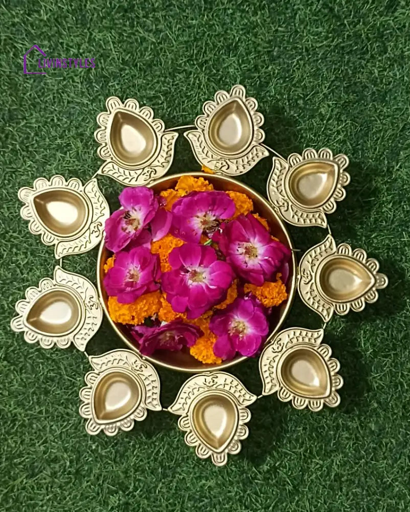 - Integrated Design: This urli features attached diyas, providing a cohesive and stylish solution for creating a warm ambiance with floating candles and traditional lighting, perfect for festive occasions.