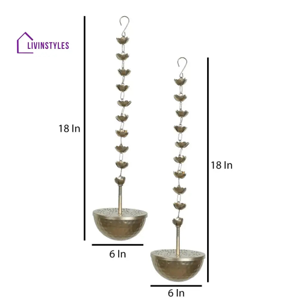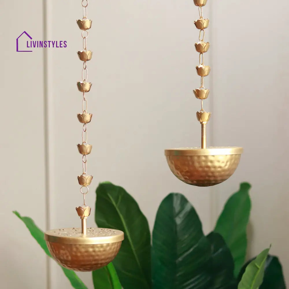 - Double Set: The set includes two hanging urlis, each crafted to hold tealight candles, providing a warm and inviting glow. The intricate detailing on each urli enhances their aesthetic appeal.
