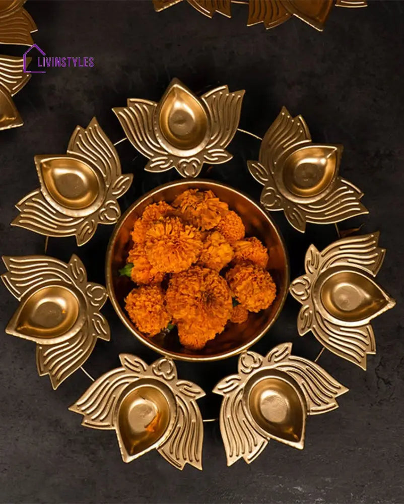 - Traditional Elegance: This Royal Golden-finished Metal Urli serves as a classic accent piece, perfect for floating candles or petals. It can be used as a decorative highlight for entrances or as a stunning centerpiece on the floor or a table.