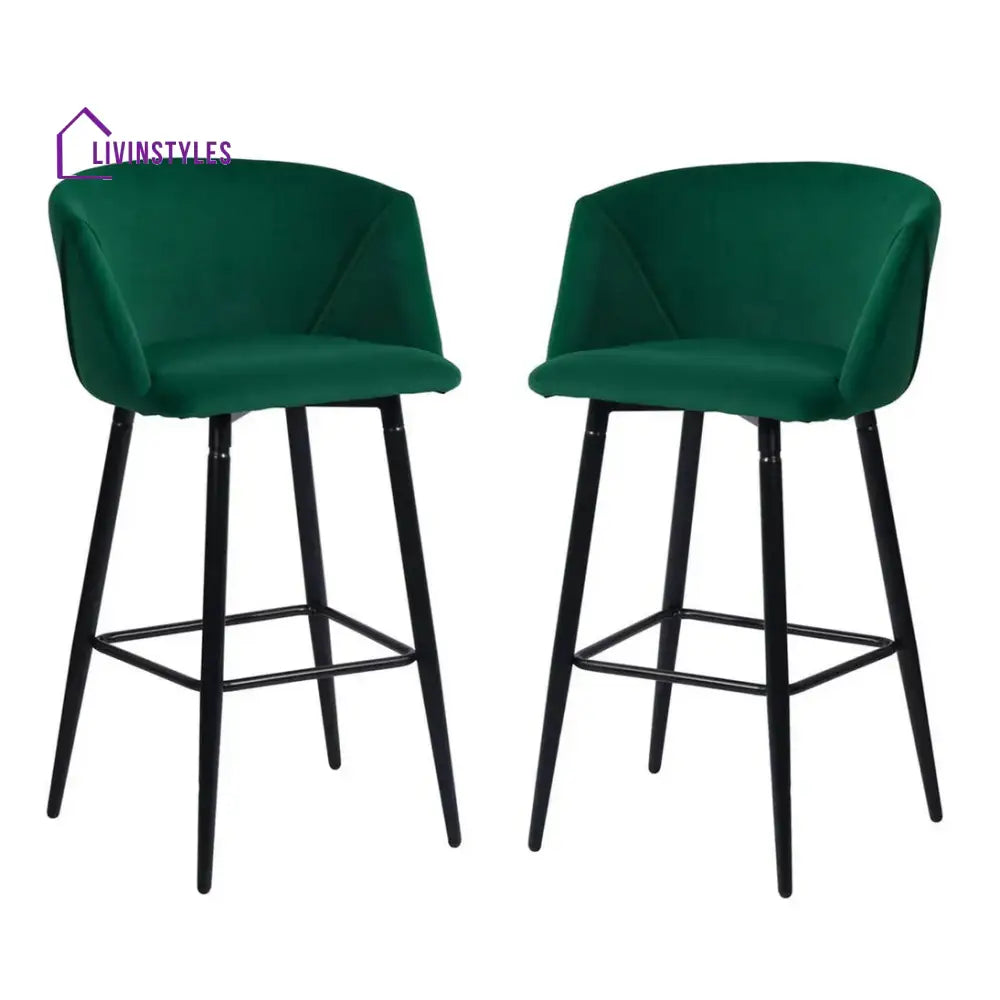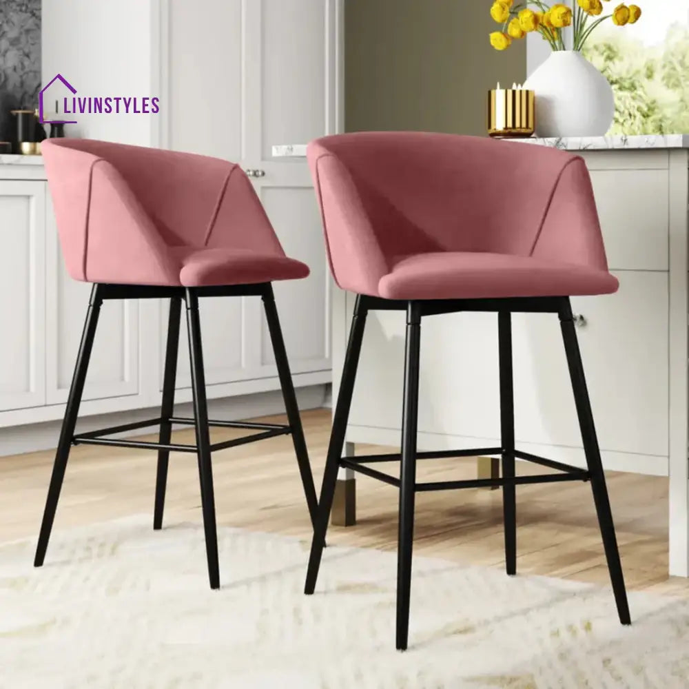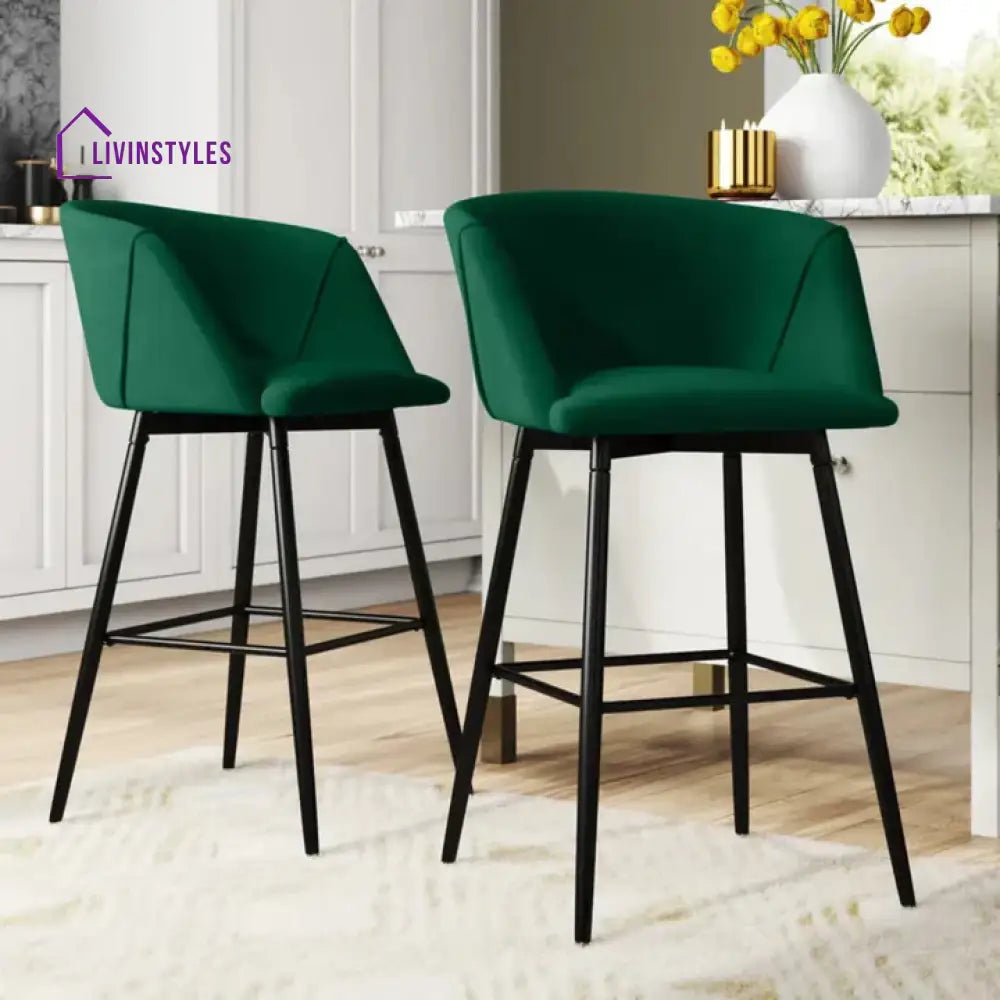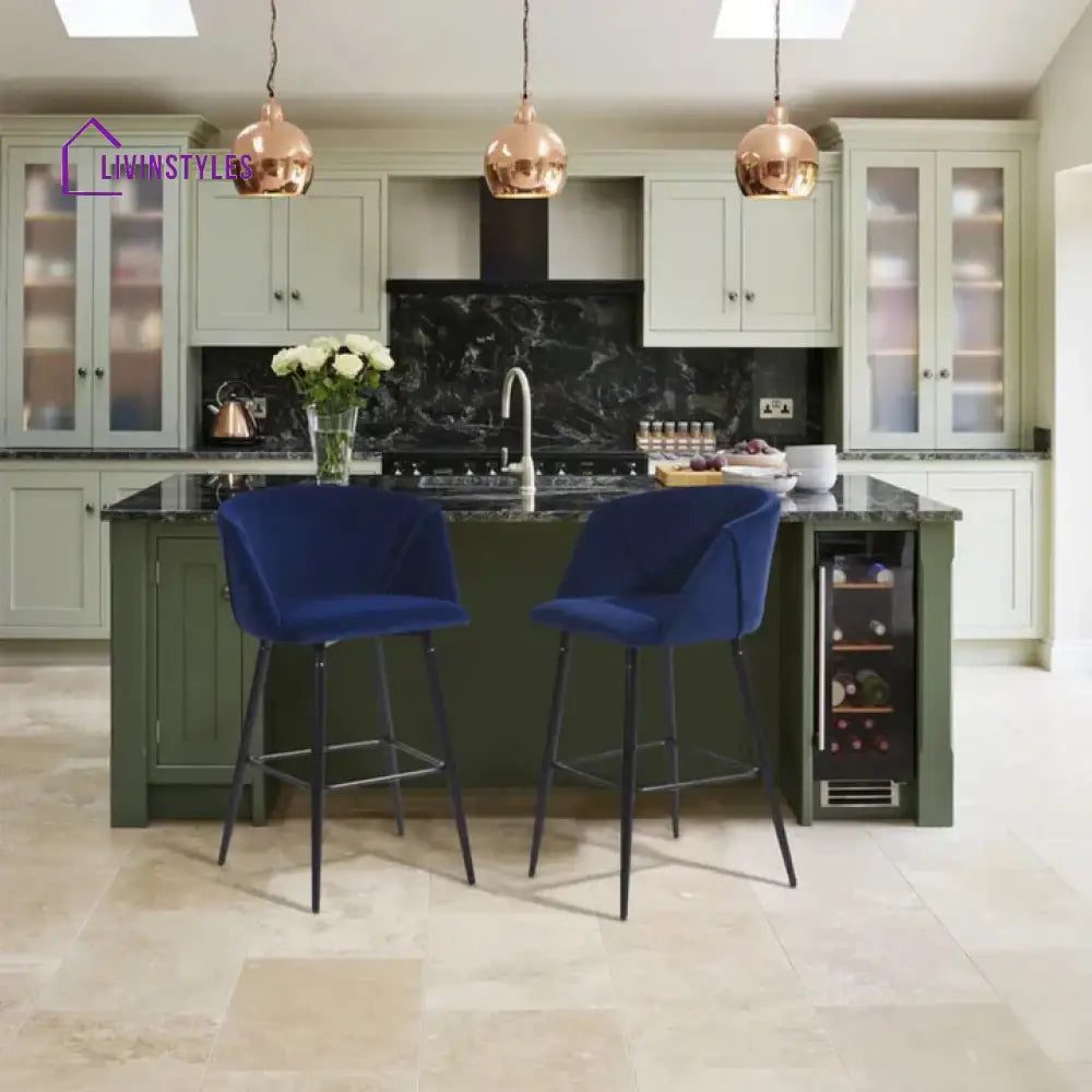 About the Product:This bar stool has clean lines and velvet upholstery that offer your kitchen island or dining table a glam look. The frames are made from engineered wood and metal, and built on flared legs for a contemporary artist look in your space. These foam-filled stools feature a bucket seat with a curved back, and they're upholstered in velvet in your choice of color. Also, they have built-in support bars at the bottom to keep your feet comfy while you kick back and enjoy a good meal or a glass of wine with friends. We also love that these stools are stain and rust-resistant, so they stand up to spill and ding.