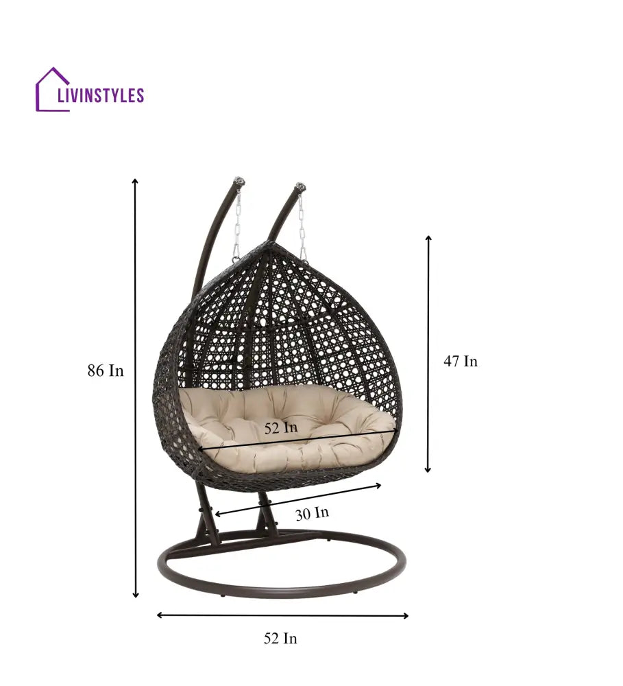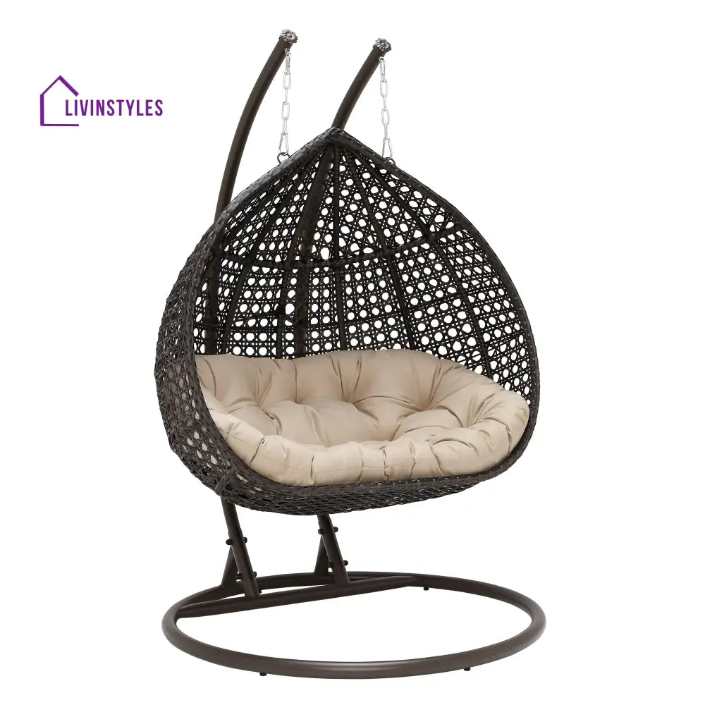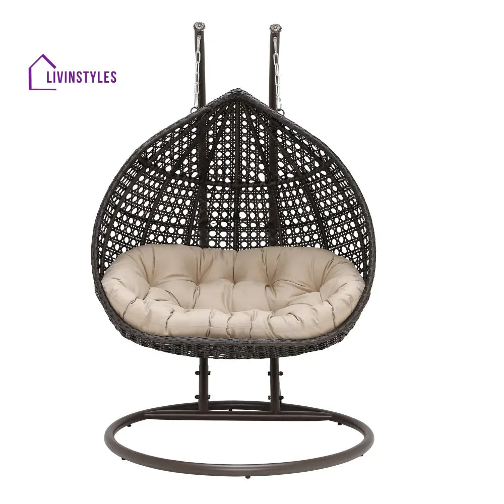 Mamta Double Seater Hanging Swing With Stand For Balcony | Garden Swing (Dark Brown)