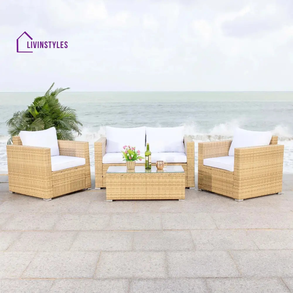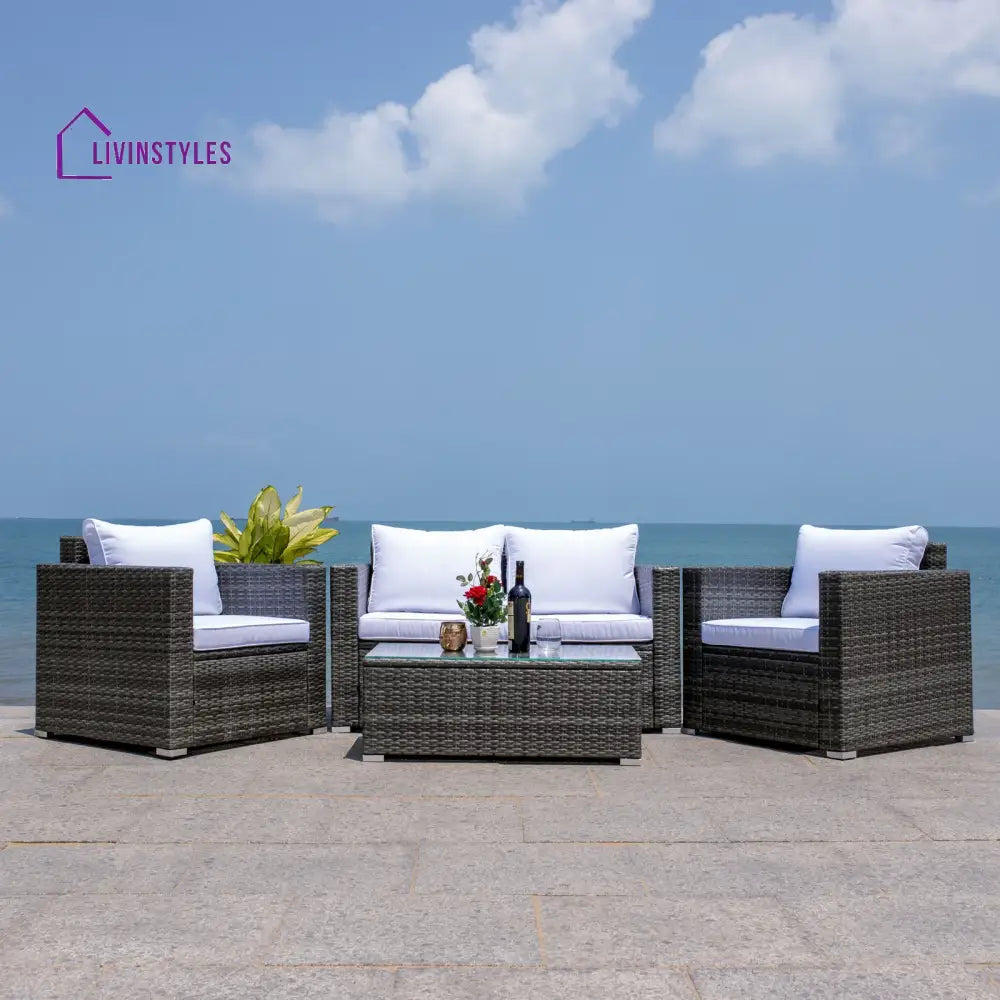 Mardula Outdoor Sofa Set 2 Seater | 2 Single seater and 1 Center Table Set (White)