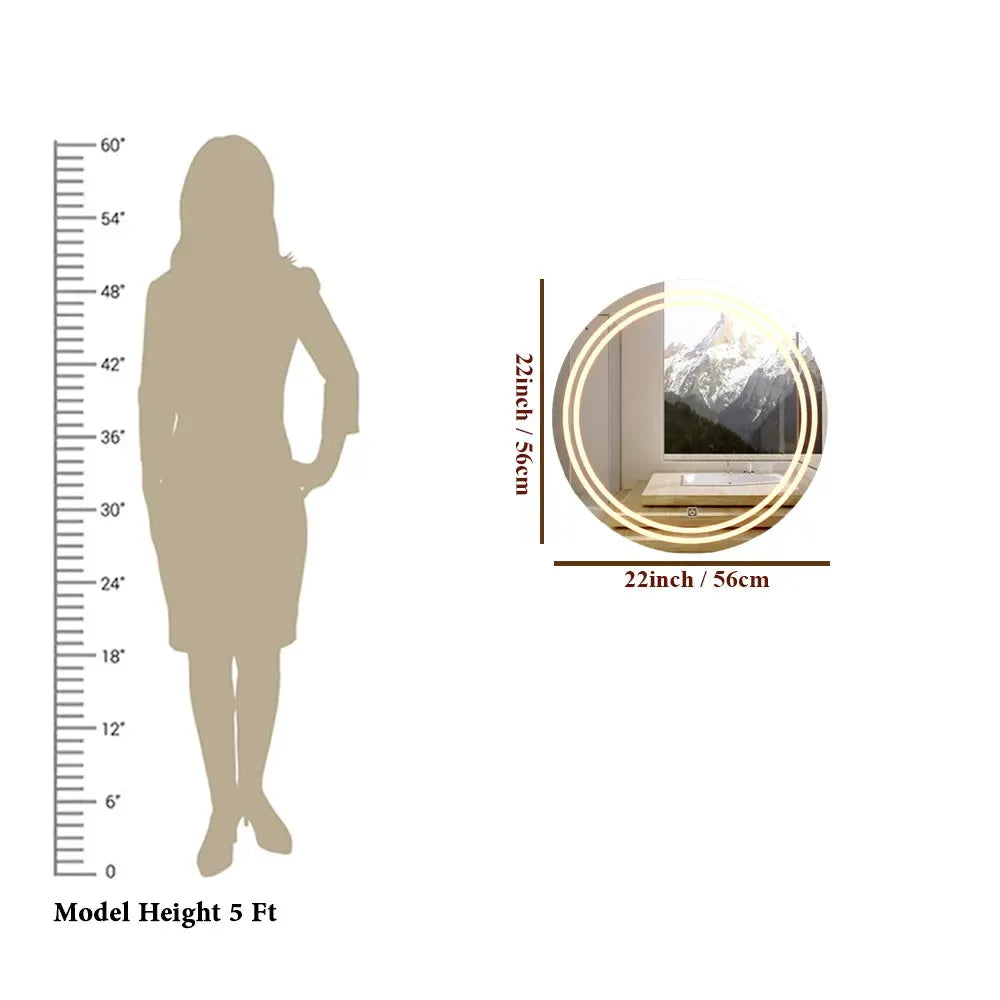 Lighting: Dual LED light rings around the mirror providing warm illumination.