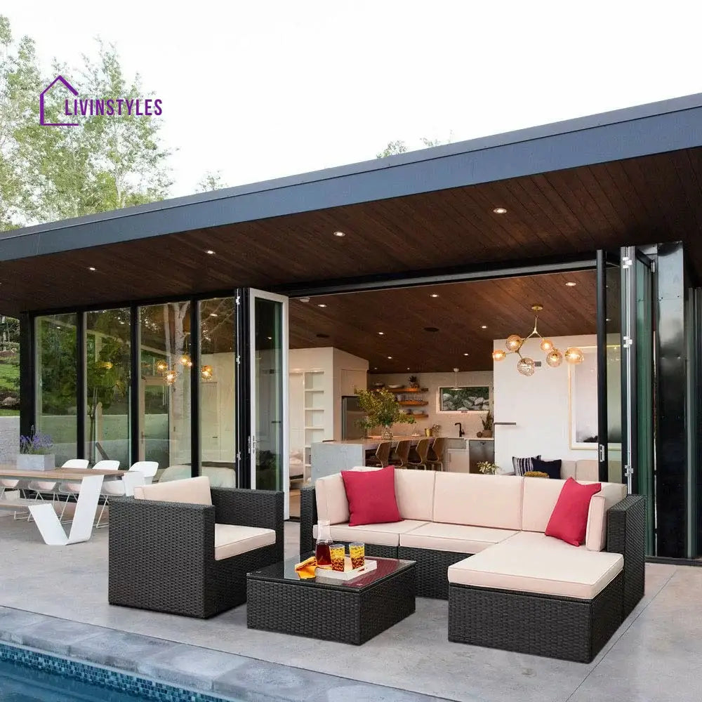 Nesiya Outdoor Sofa Set 5 Seater and 1 Center Table Set ( Dark Brown)