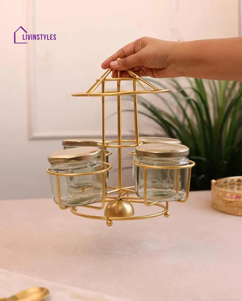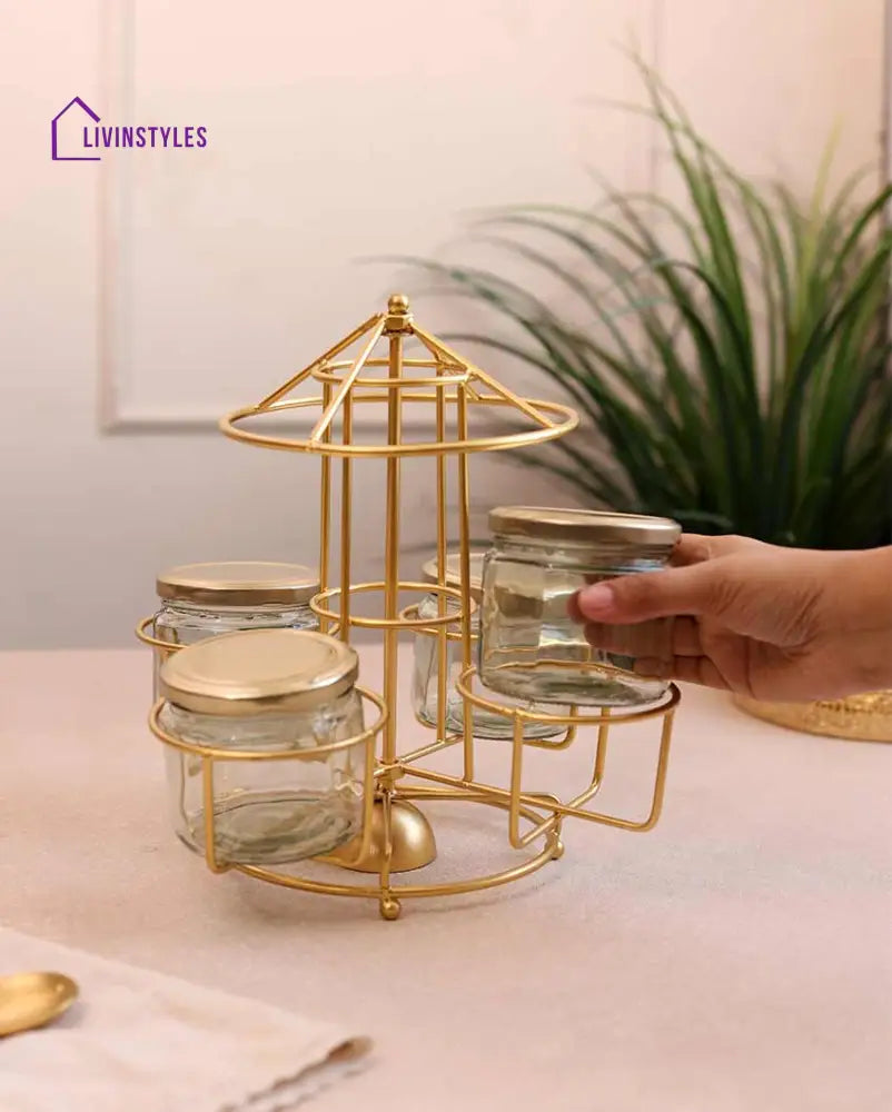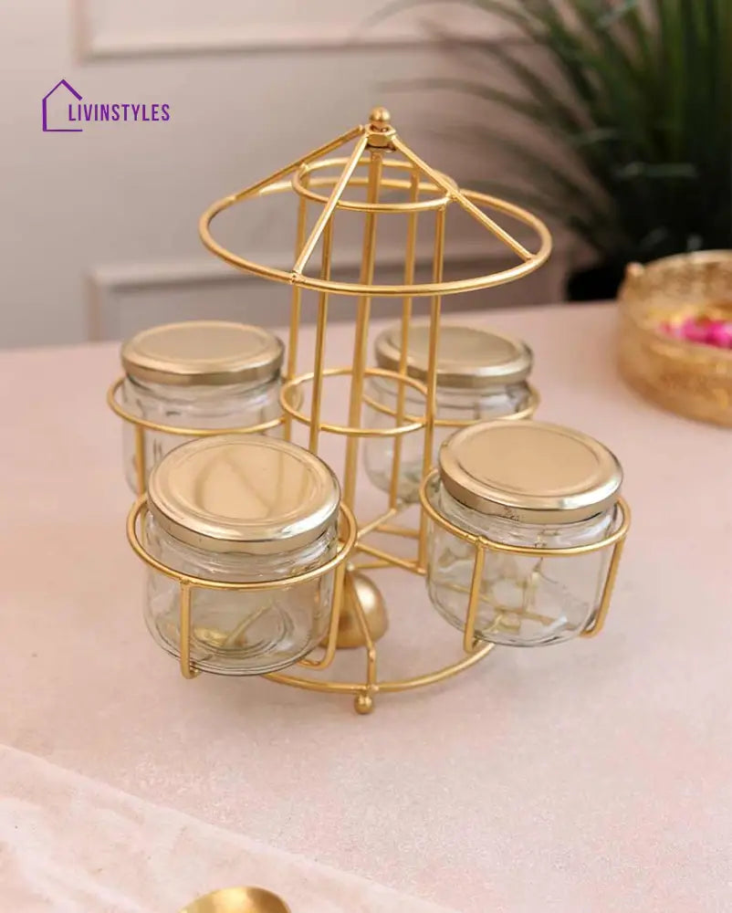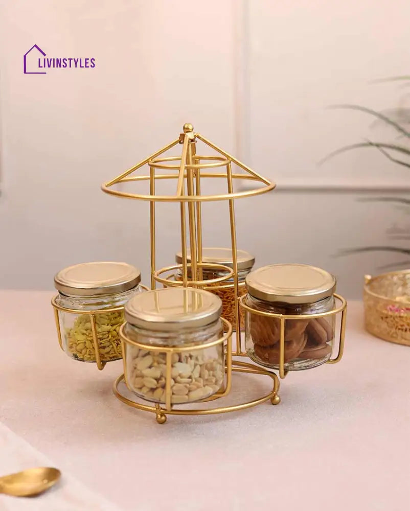 Round Dry Fruits Serving Platter With Jars | 350 ml