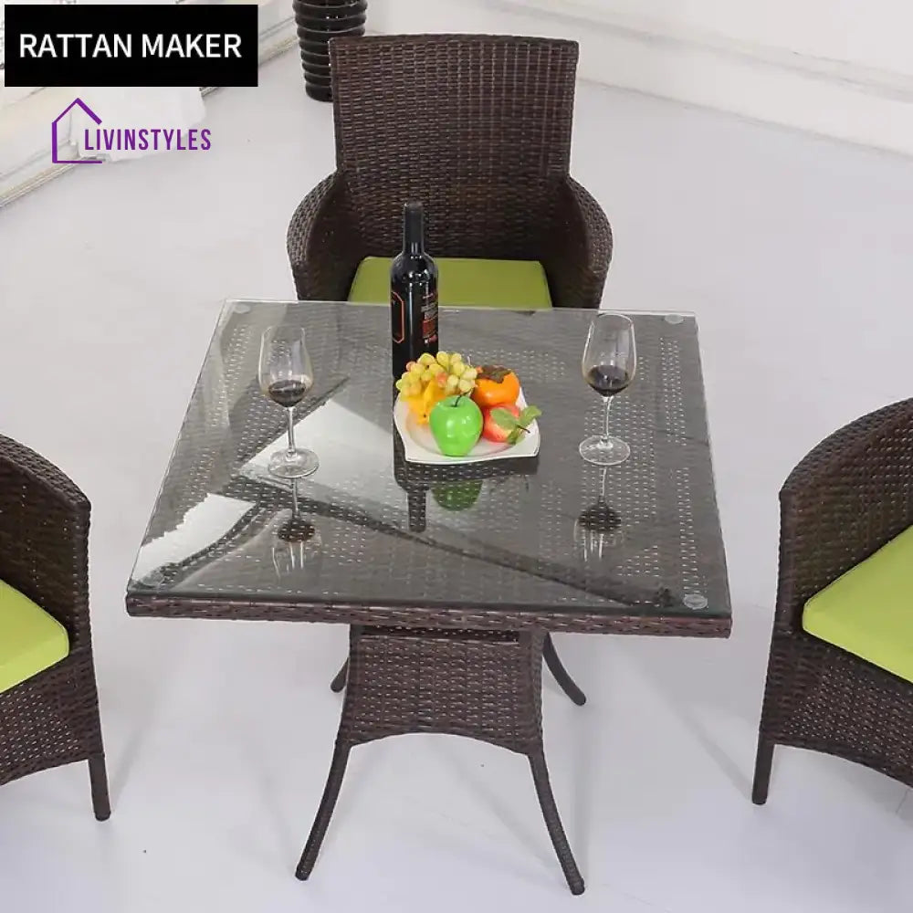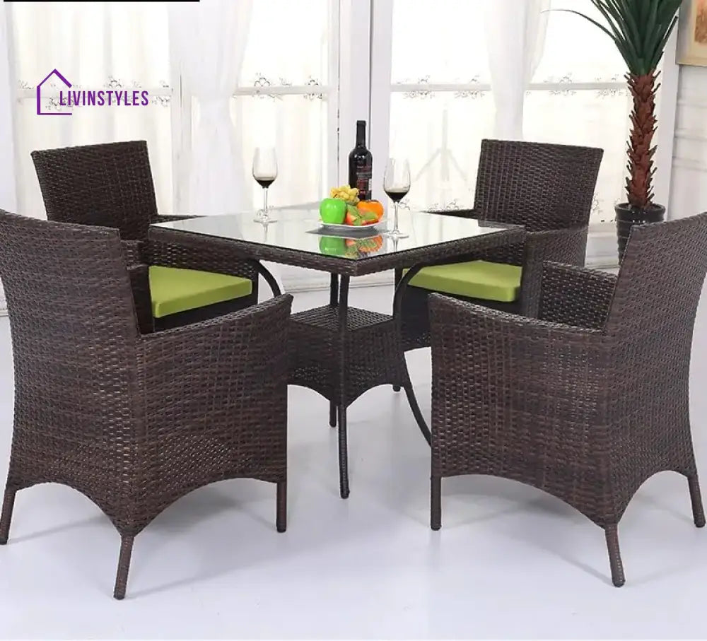 Shaan 5-Piece Indoor Outdoor Wicker Patio Dining Table Furniture Set with Seat Cushion for Lawn Backyard Terrace(Dark Brown and Green)