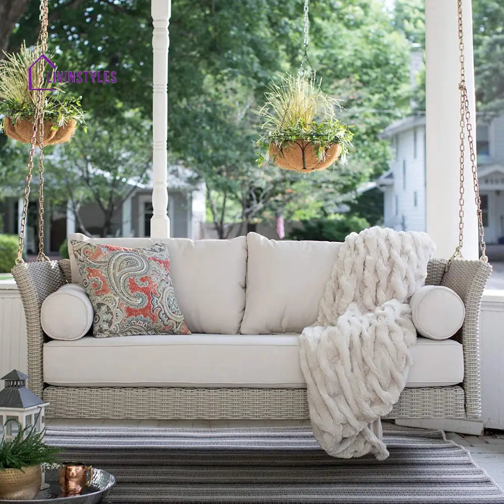 Experience elevated comfort with our Double Seater Wicker Swing without stand. Handwoven for timeless elegance, it's a testament to Indian craftsmanship. The durable frame and water-resistant fabric enhance relaxation. Whether shared or solo, its gentle sway adds a touch of serenity to your space. Elevate your outdoor area with this blend of artistry and comfort, promising moments of pure relaxation.