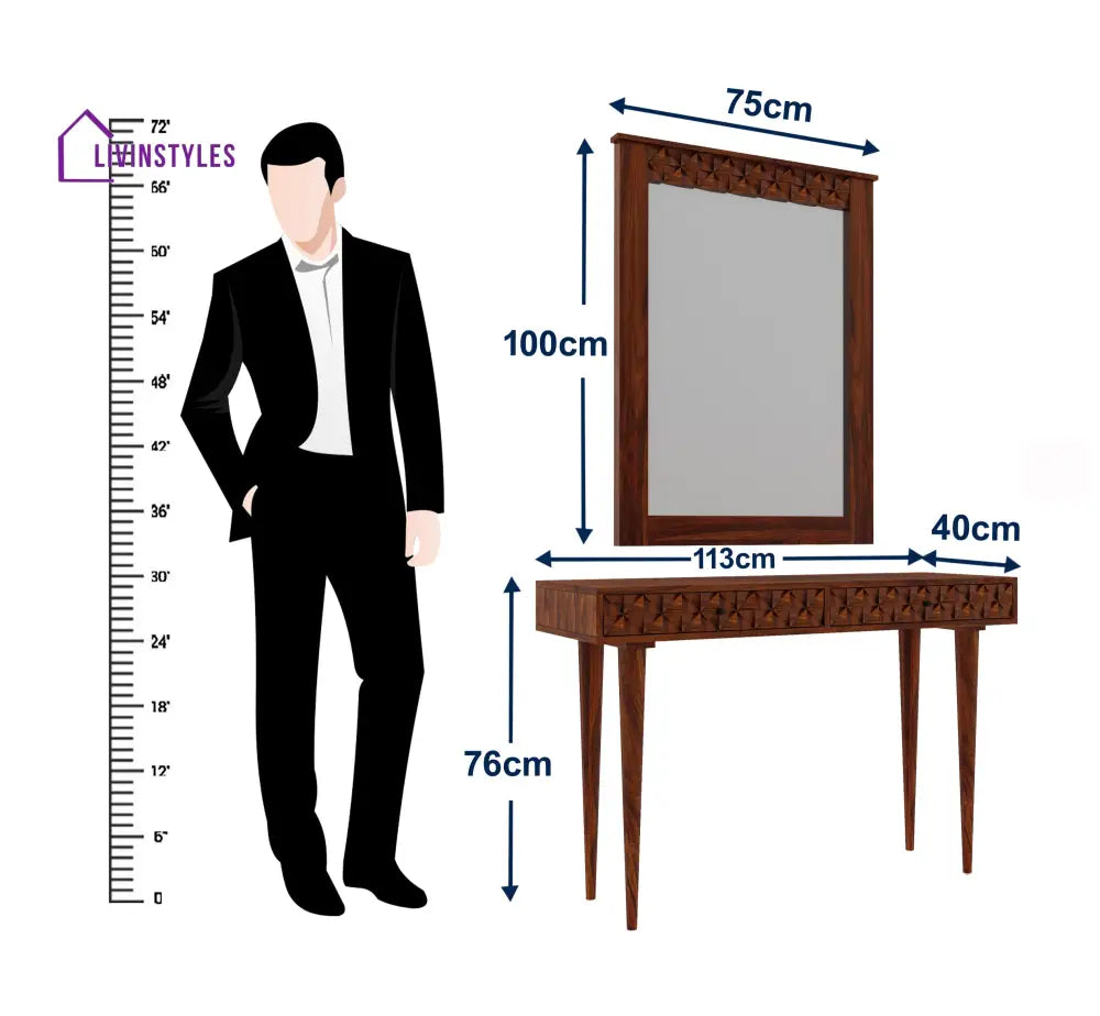 Add timeless elegance to your home with the Silvia Solid Sheesham Wood Console with Mirror from LivIn Styles. Expertly crafted from premium Sheesham wood, this console showcases a stunning natural finish that highlights the wood’s rich grain and durability. Designed with two spacious drawers, it offers both style and functionality for your living or hallway space.