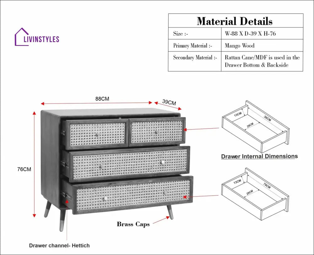 Secondary Material: Rattan Cane / MDF (Drawer Bottom & Back)
