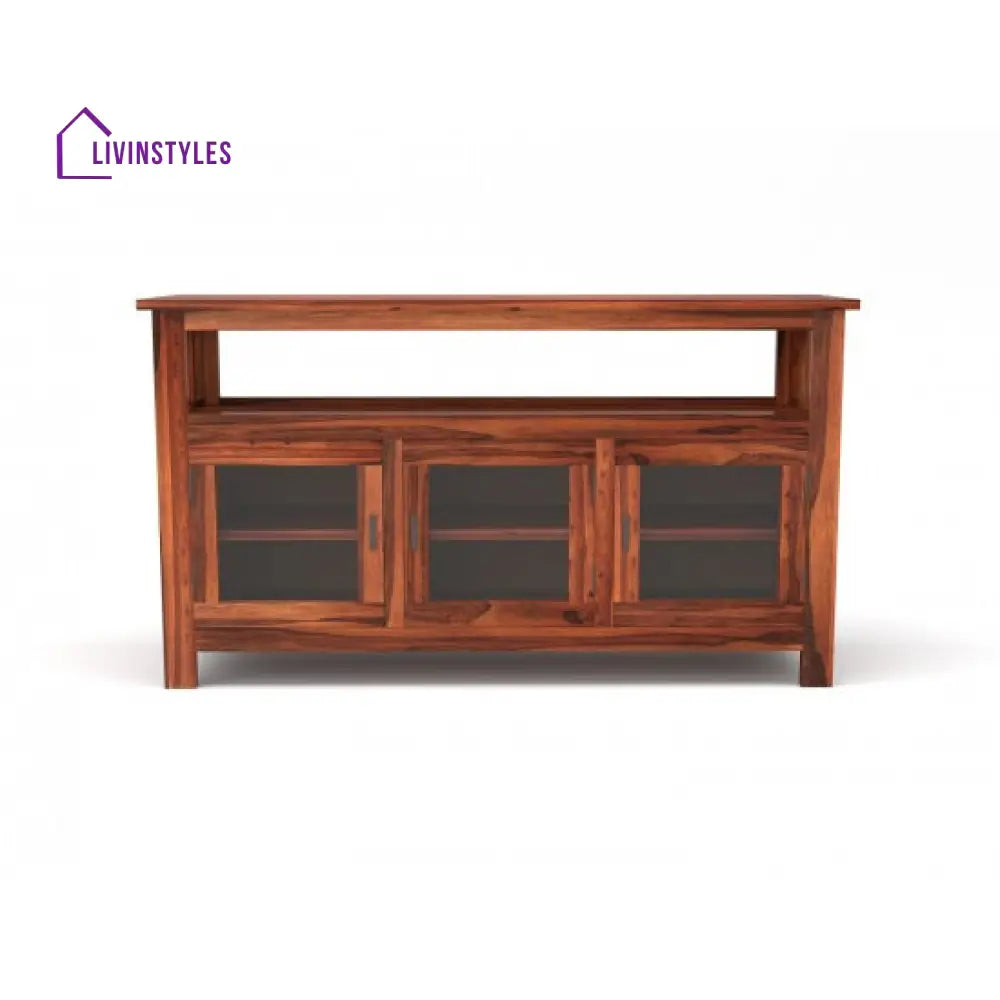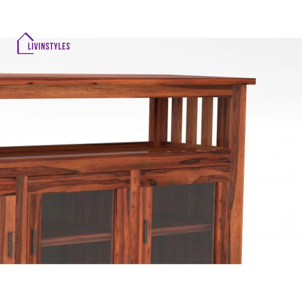 Yuvraj Dining Room Cabinet (Honey Finish) Glass Door