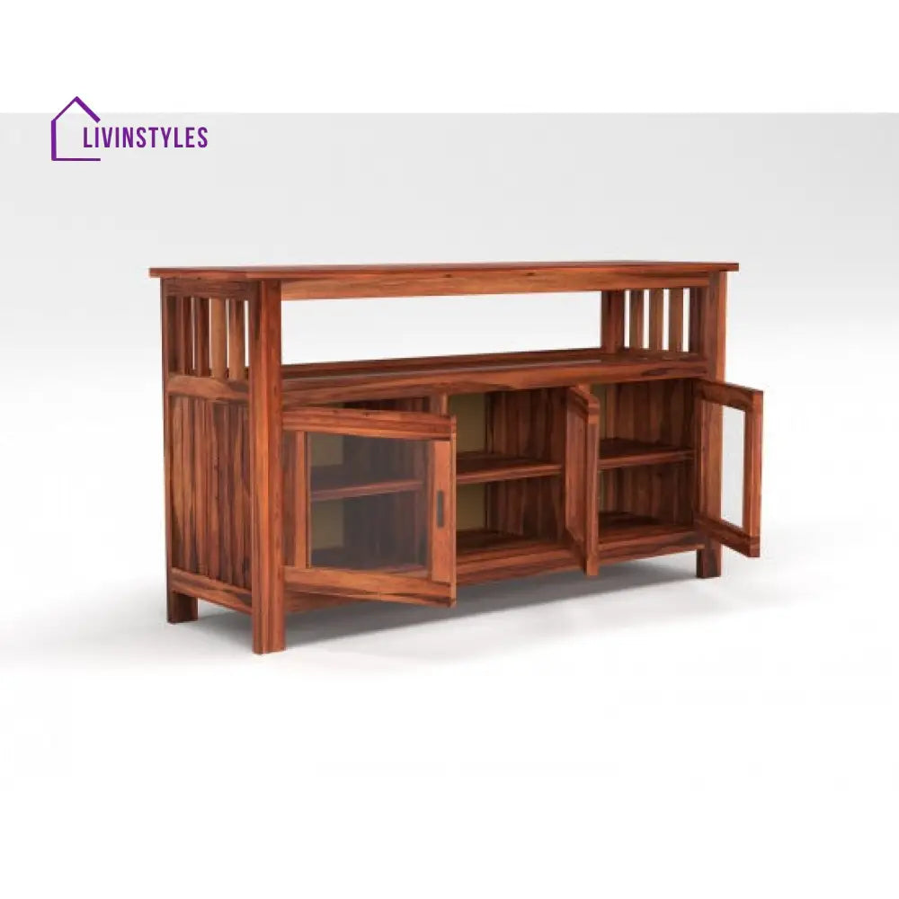 Introducing our exquisite Sheesham Wood Crockery Cabinet, meticulously crafted to elevate your dining room decor with its contemporary design and superior quality. Made from solid Sheesham wood, renowned for its durability and natural beauty, this cabinet exudes timeless charm and elegance.