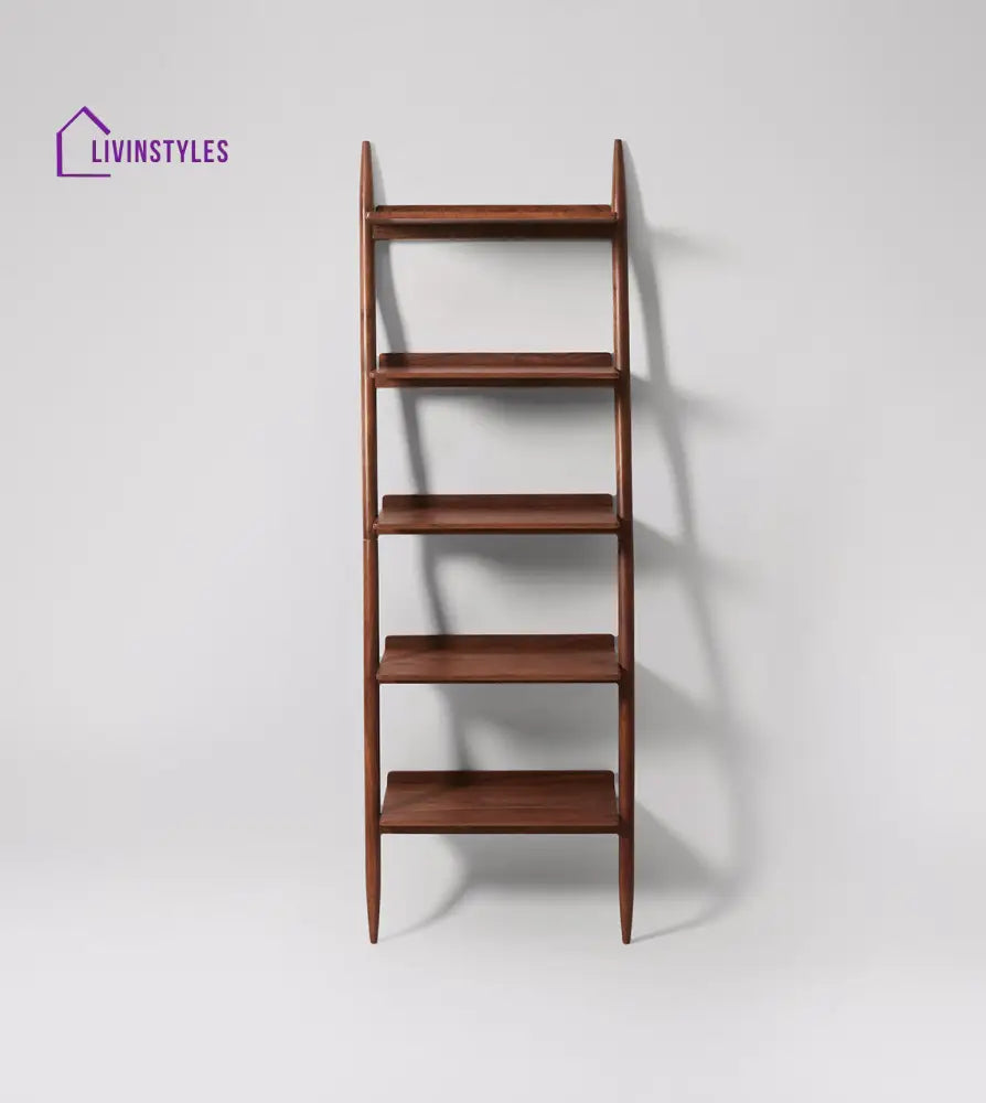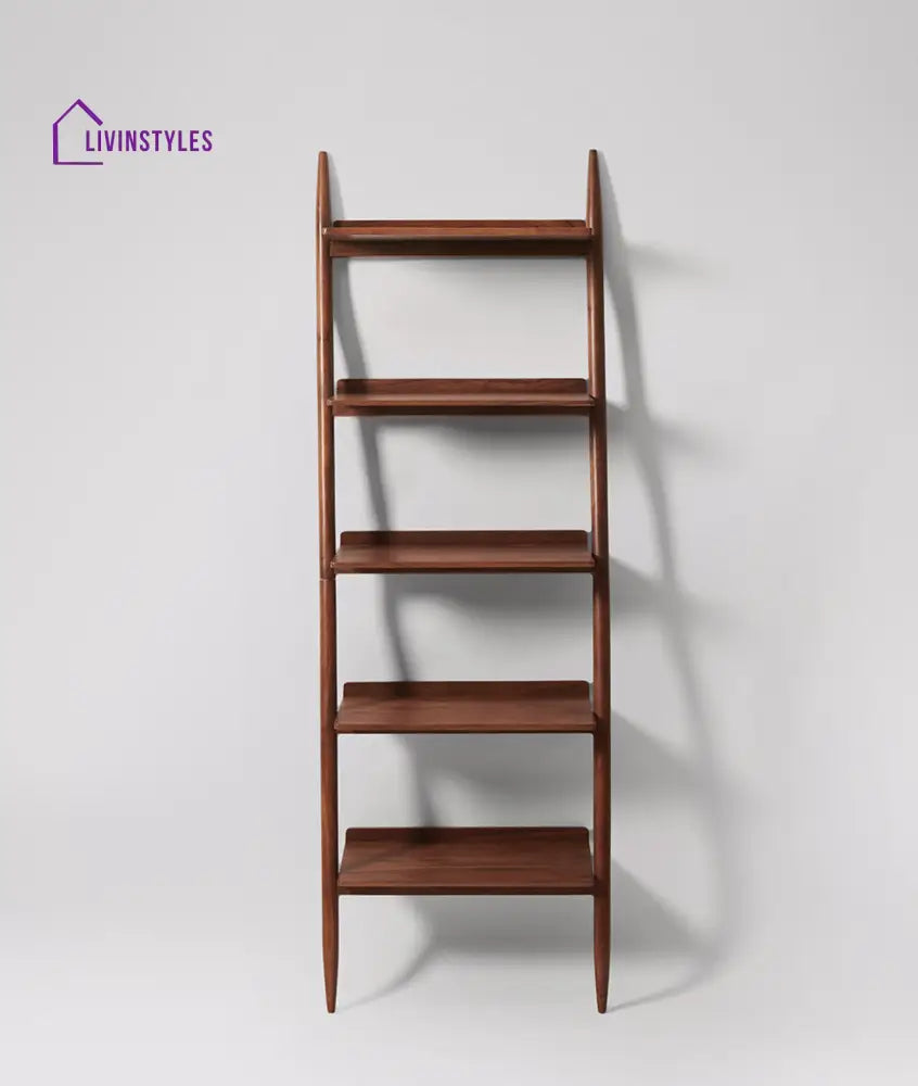 Resting perfectly against your wall, these contemporary Lily Ladder bookshelves have the patented sophistication of Scandinavian-inspired design, with tapered legs and a solid, natural timber frame that contrasts beautifully with the light, solid wood shelves. The shelves give ample storage and create a clean, simple aesthetic.