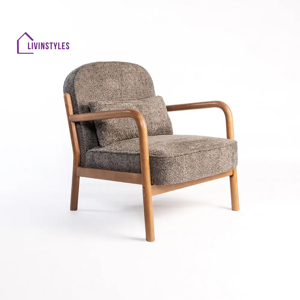 This chair combines clean design with natural materials. This simple yet stylish armchair is crafted from soft bouclé fabric, offering comfort and texture. This product is machine made, making each piece truly one of a kind! This craftsmanship ensures no two items are exactly alike, adding a personal touch to your decor.