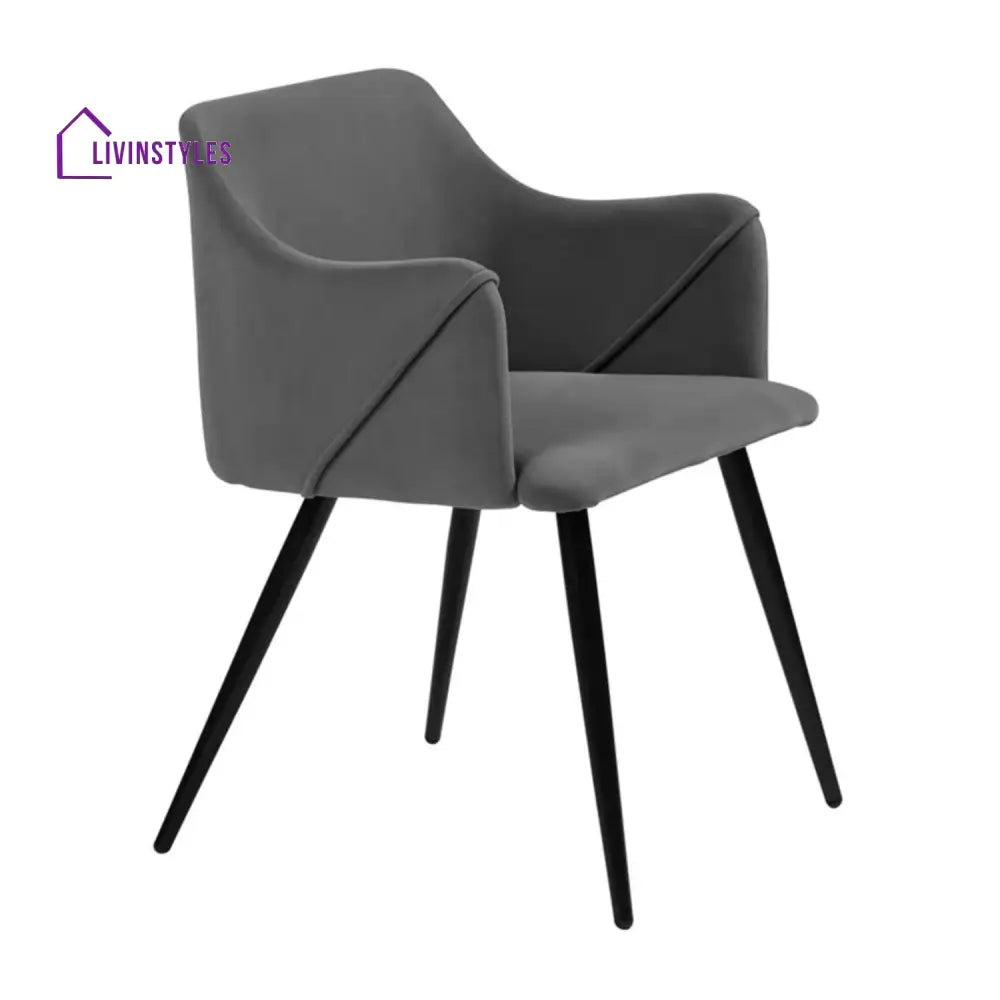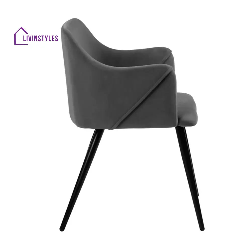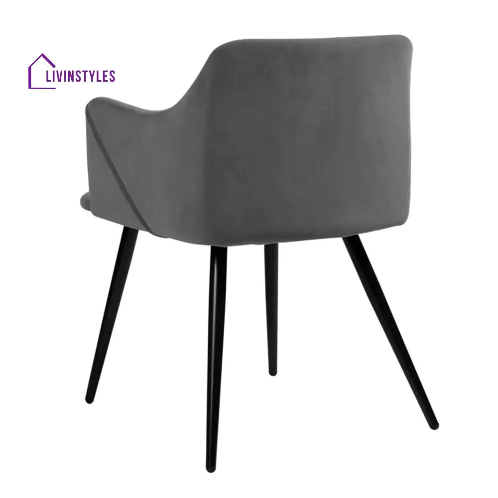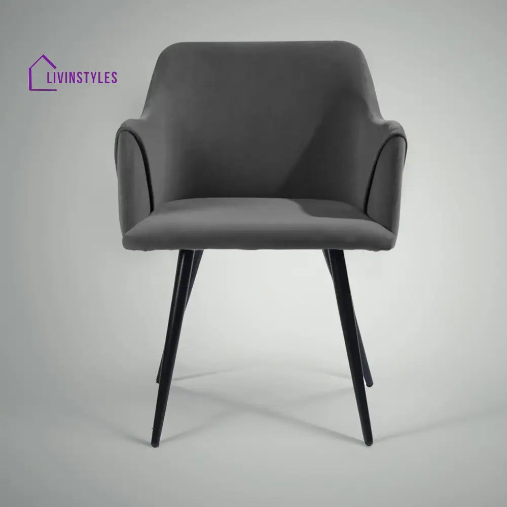 Sleek Designer Chair, crafted in sumptuous velvet, elevates dining spaces with chic sophistication. Its plush upholstery and sleek design offer both comfort and elegance, enhancing any dining experience.
