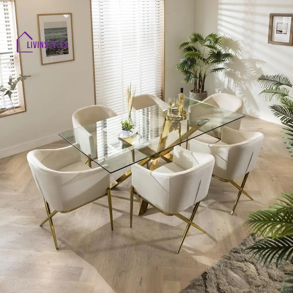 • Soft Touch Cream Velvet Dining Chairs