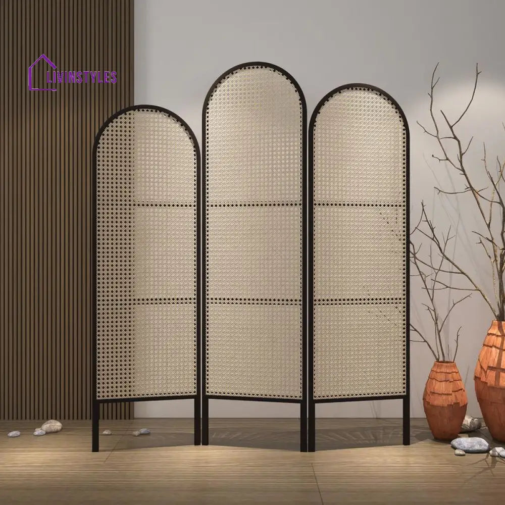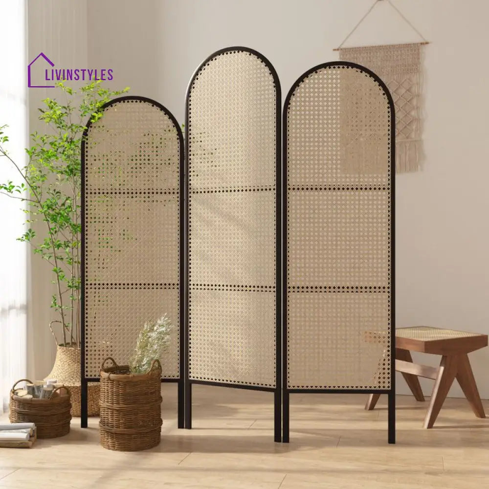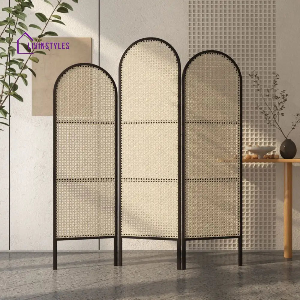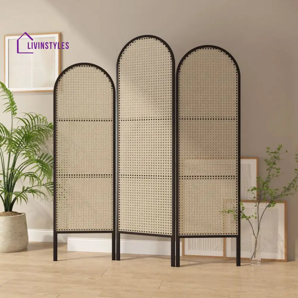 Adeline Wooden and Cane Weaving Room Partition for Living Room