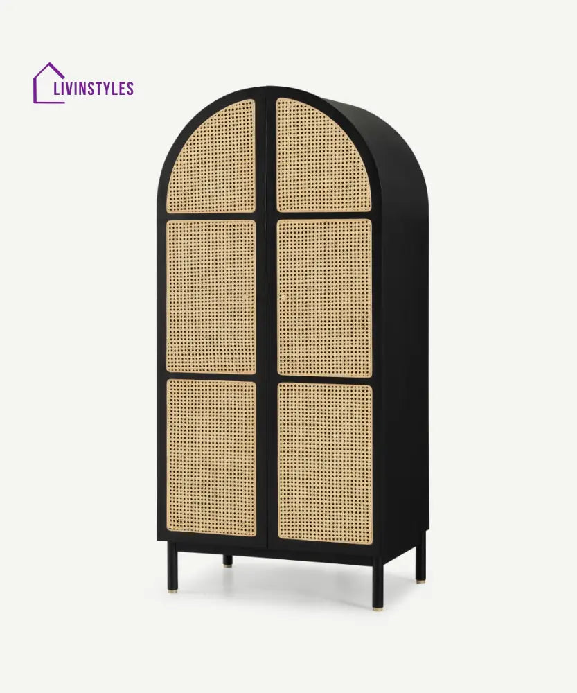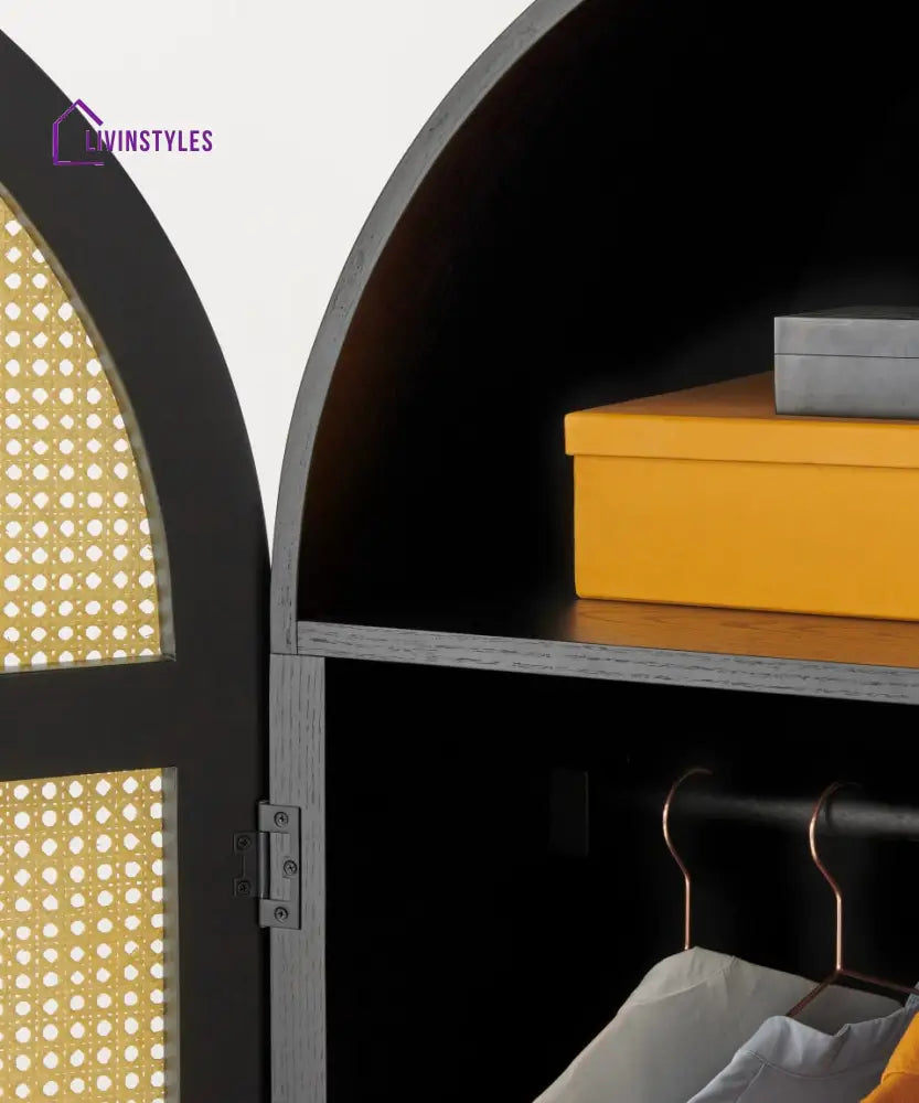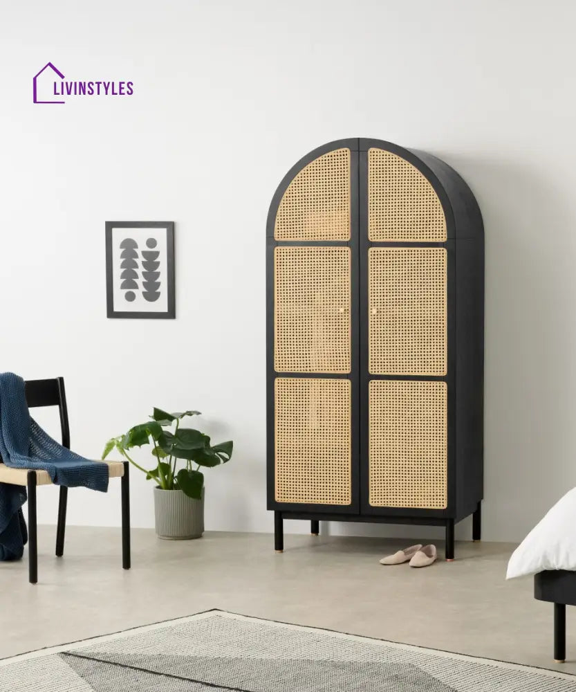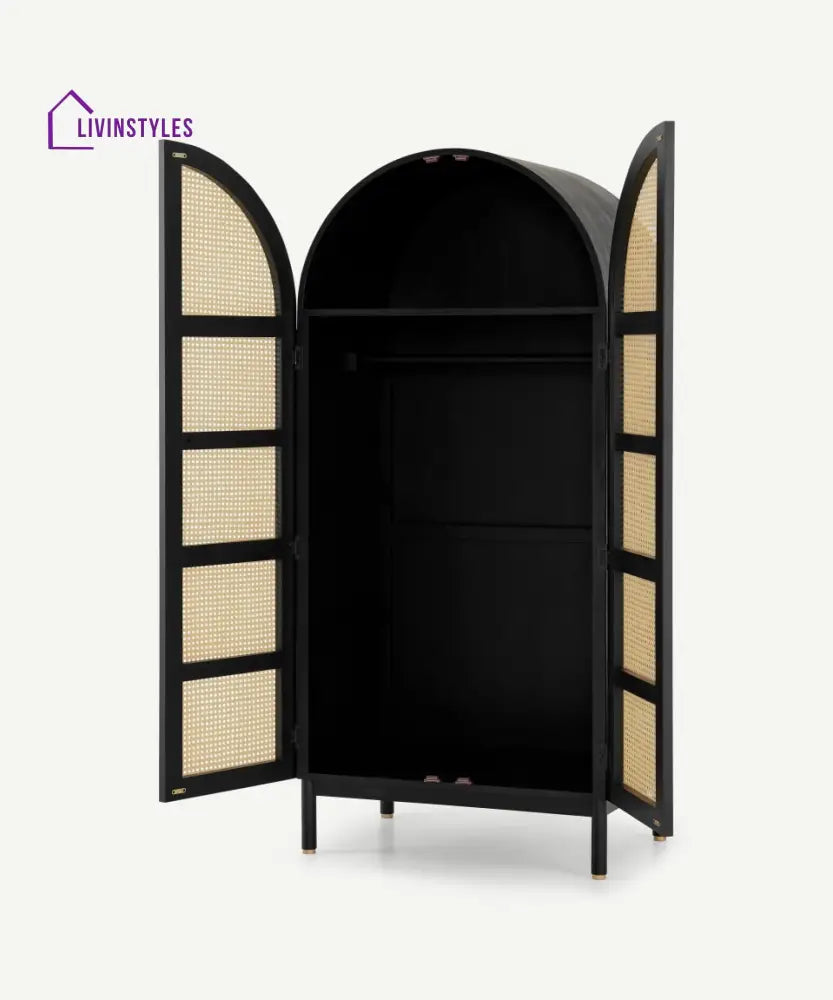 A refined combination of brass detailing and black stained mango wood and cane, this double wardrobe's curved silhouette feels warm and welcoming – and it'll hang your outfits nicely.