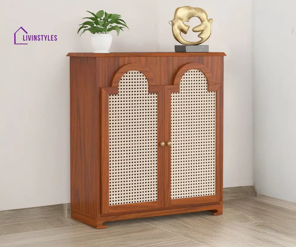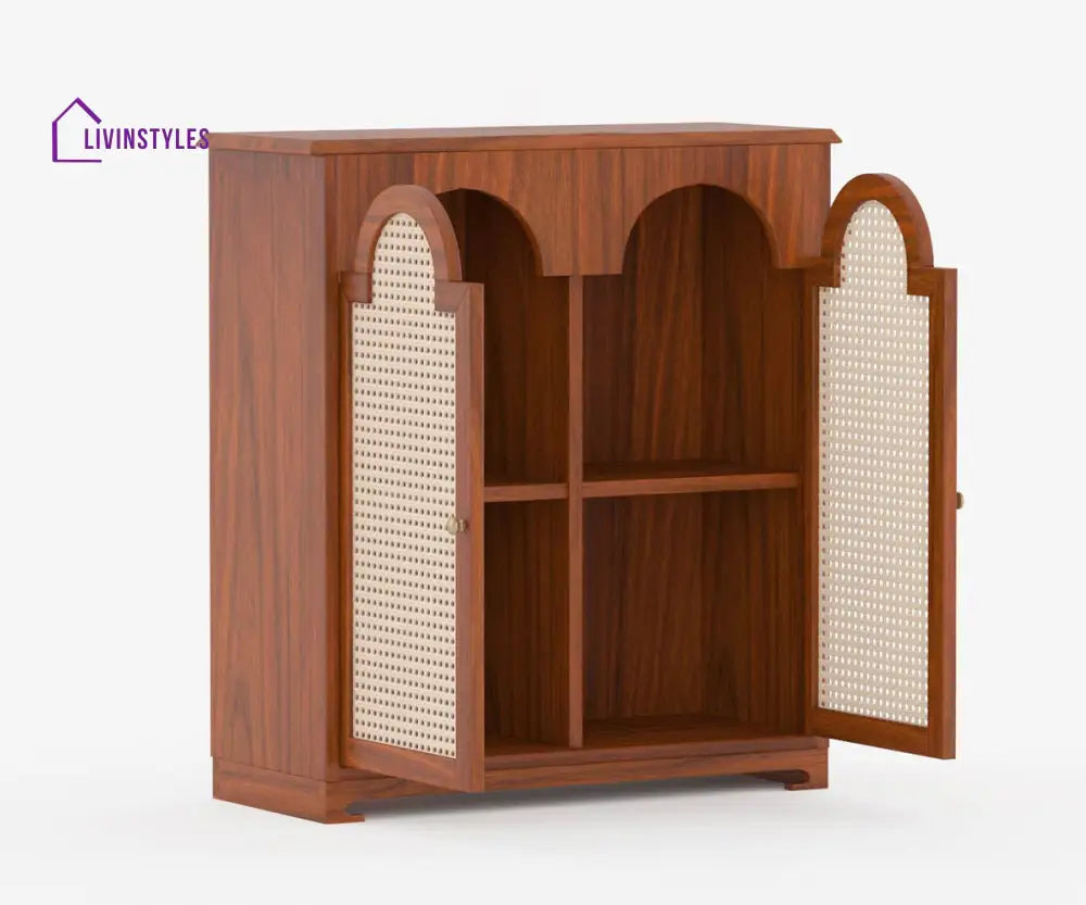 Artur Solid Wood Acacia Cane Cabinet and Sideboard (Honey Finish)