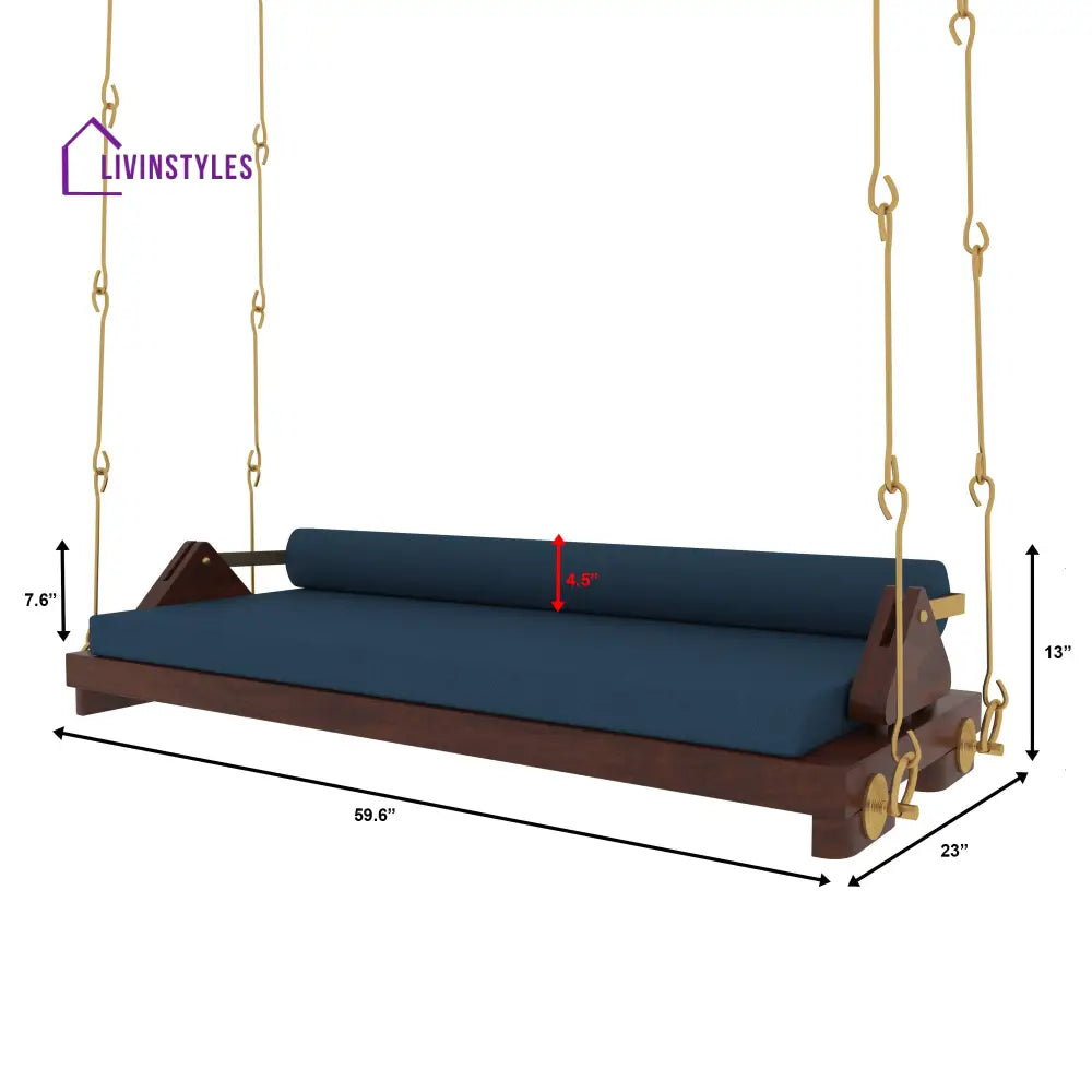 Introducing our Minimalist Wooden Swing, designed with sleek lines and paired with plush blue cushions for the perfect blend of style and comfort. Its compact size makes it ideal for smaller interiors or under-stair spaces, bringing elegance and functionality without overwhelming your décor.