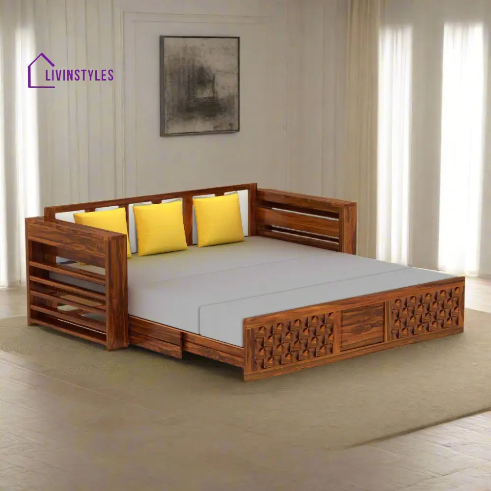 Product Name: Callie Solid Sheesham Wood 3-Seater Sofa Cum Bed by LivIn Styles