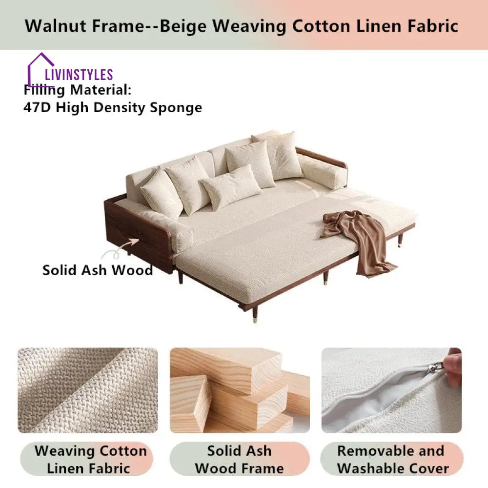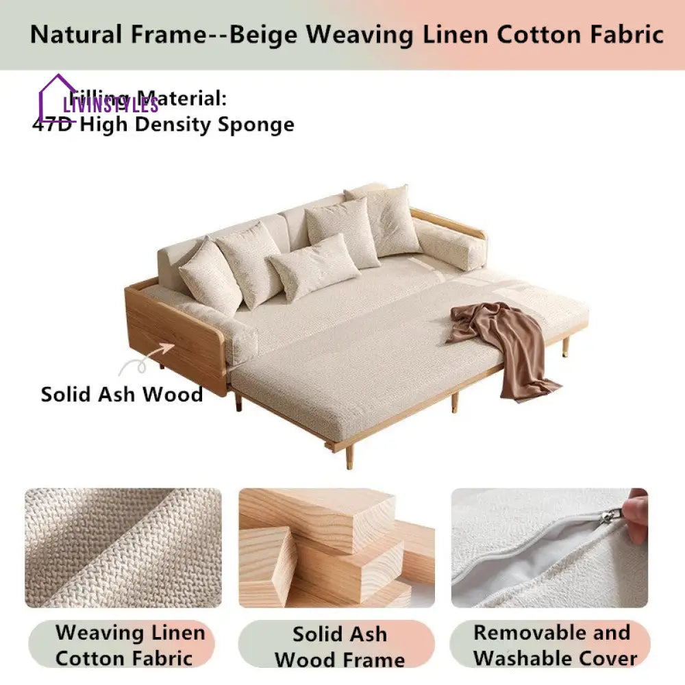 Damen Solid Wood Sofa Come Bed