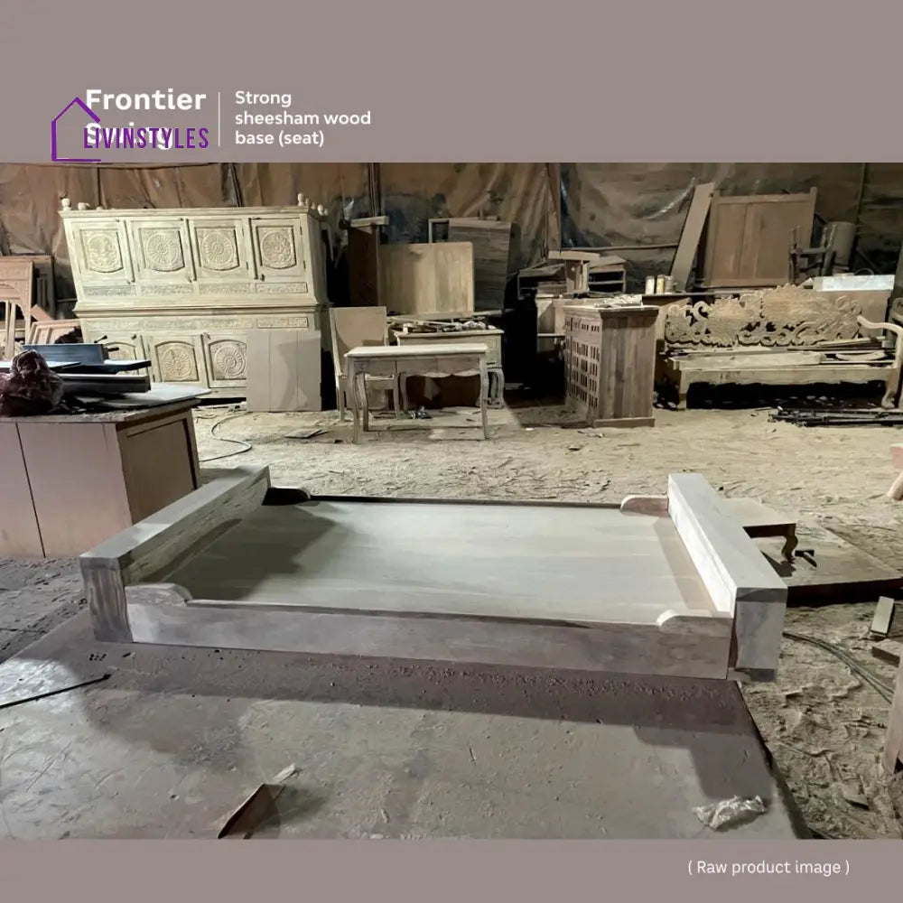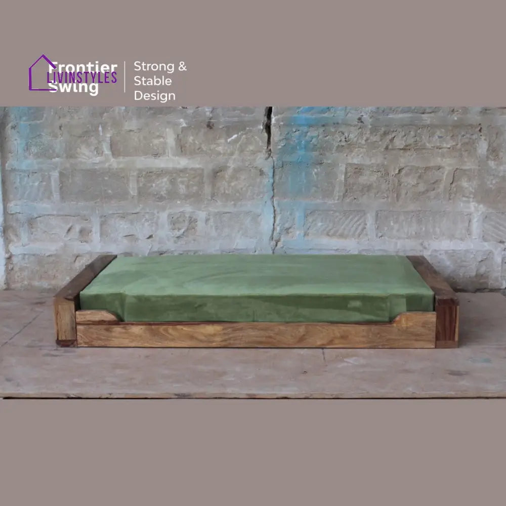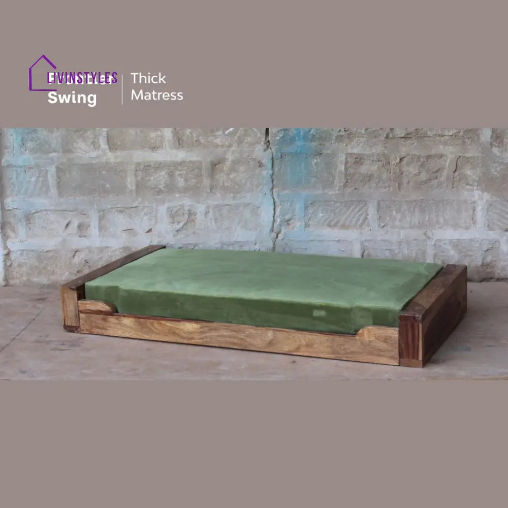 Crafted in solid Sheesham wood without a handrest or backrest for those who don`t want the obstruction in the view or living room. Strong and sturdy construction with solid wood sheesham base topped with 5 inch quality matress.