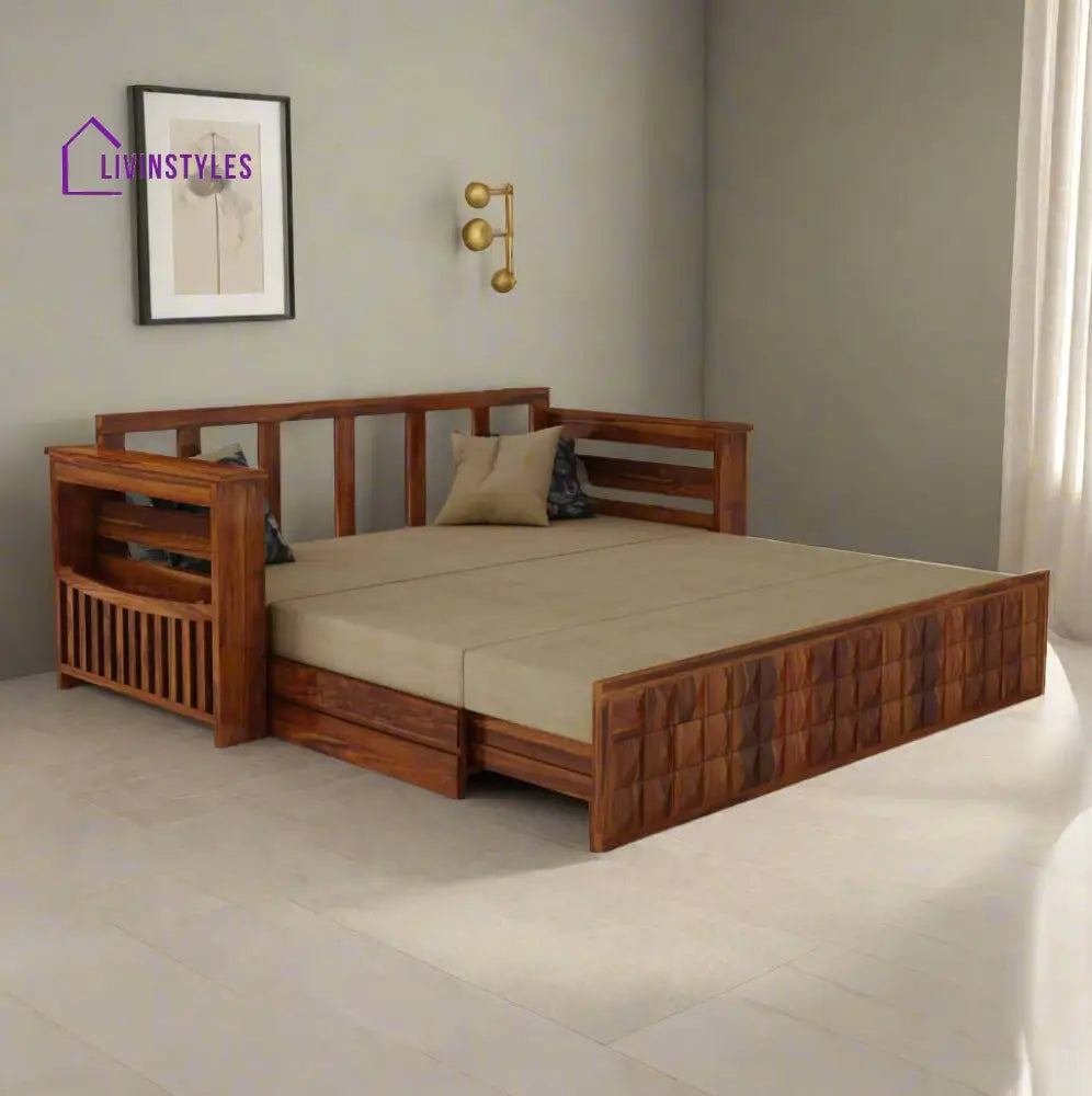 Product Name: Eliana Solid Sheesham Wood 3-Seater Sofa Cum Bed by LivIn Styles