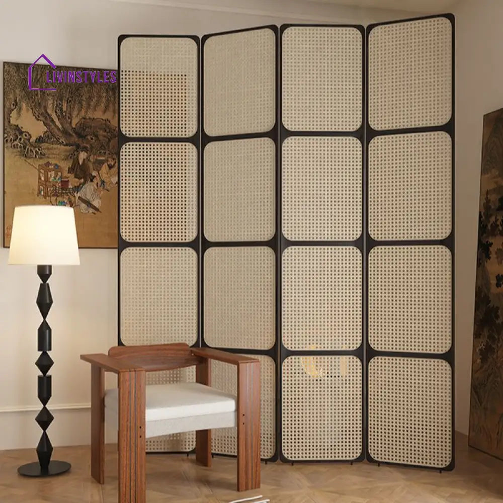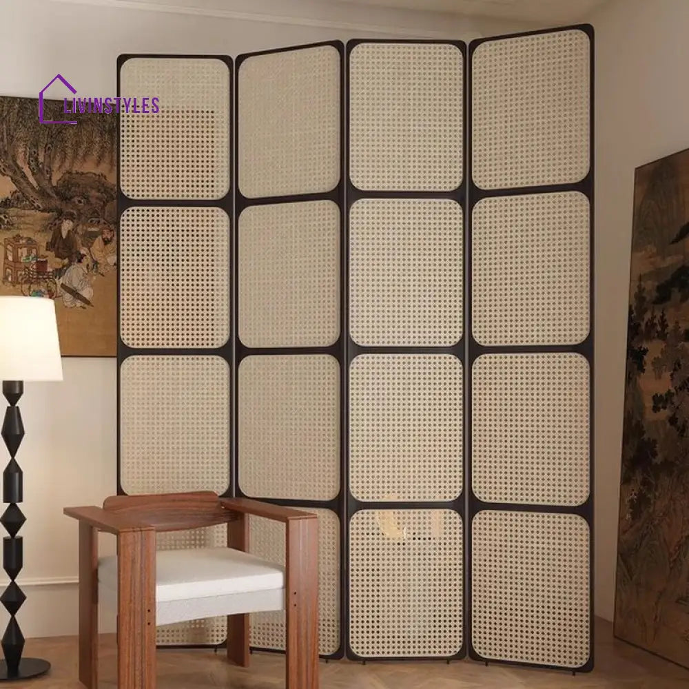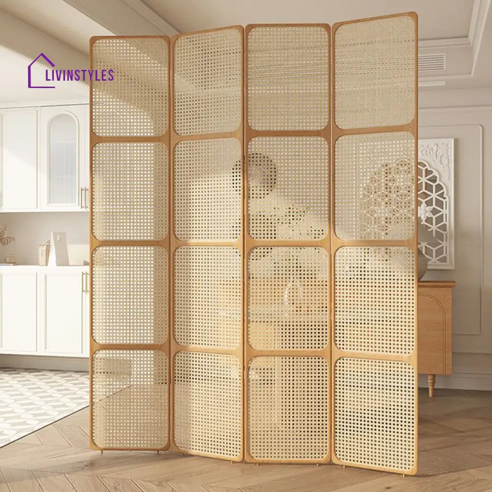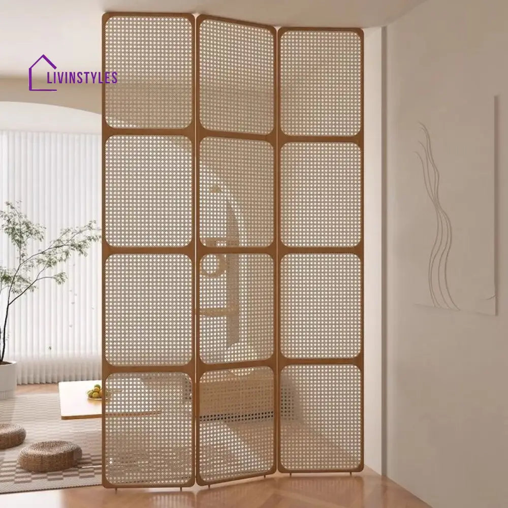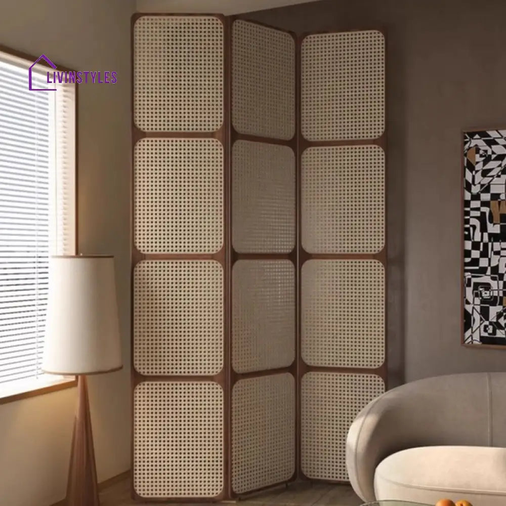 Elowen Wooden and Cane Weaving Room Partition for Living Room - 3 Panel