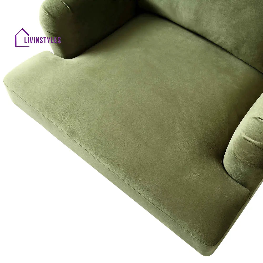 Falisha Olive Green Velvet Armchair with Wooden Legs