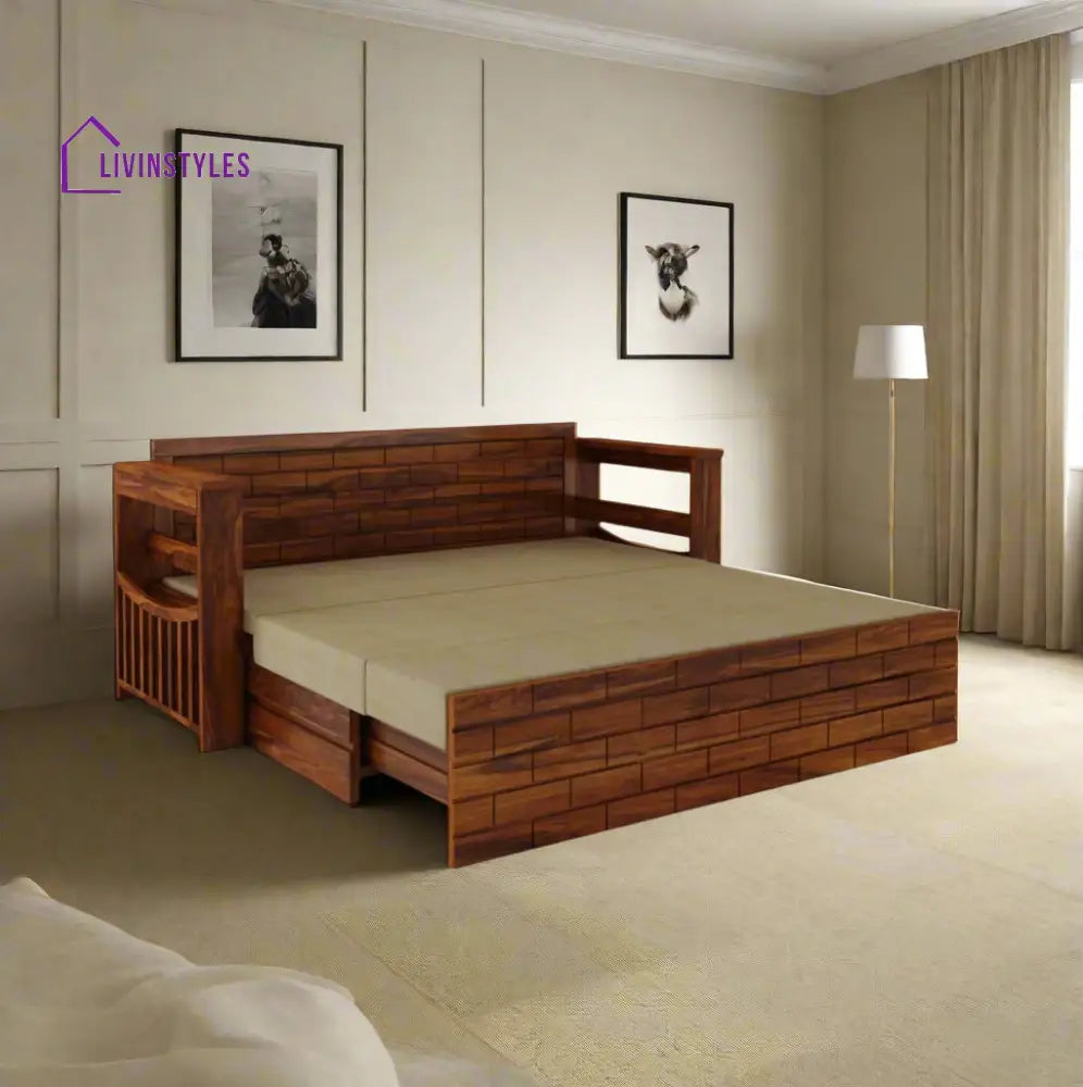Product Name: Harmony Solid Sheesham Wood 3-Seater Sofa Cum Bed by LivIn Styles