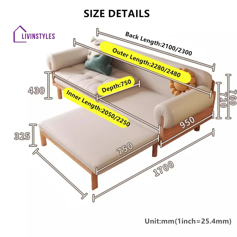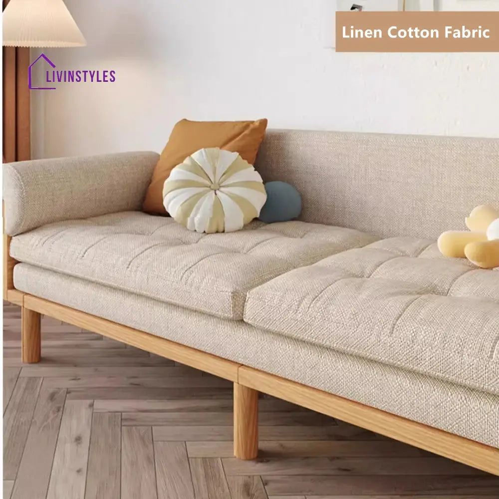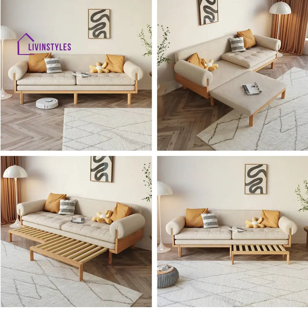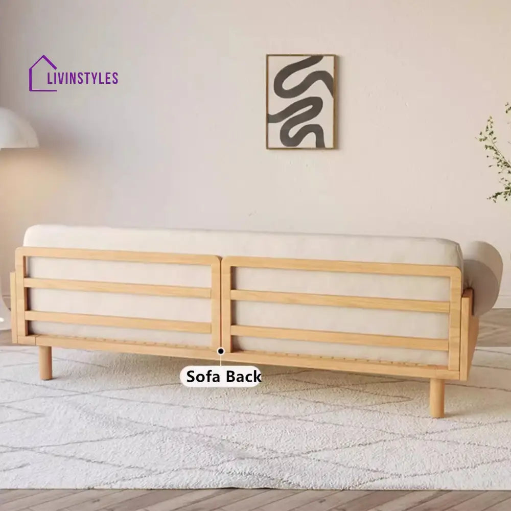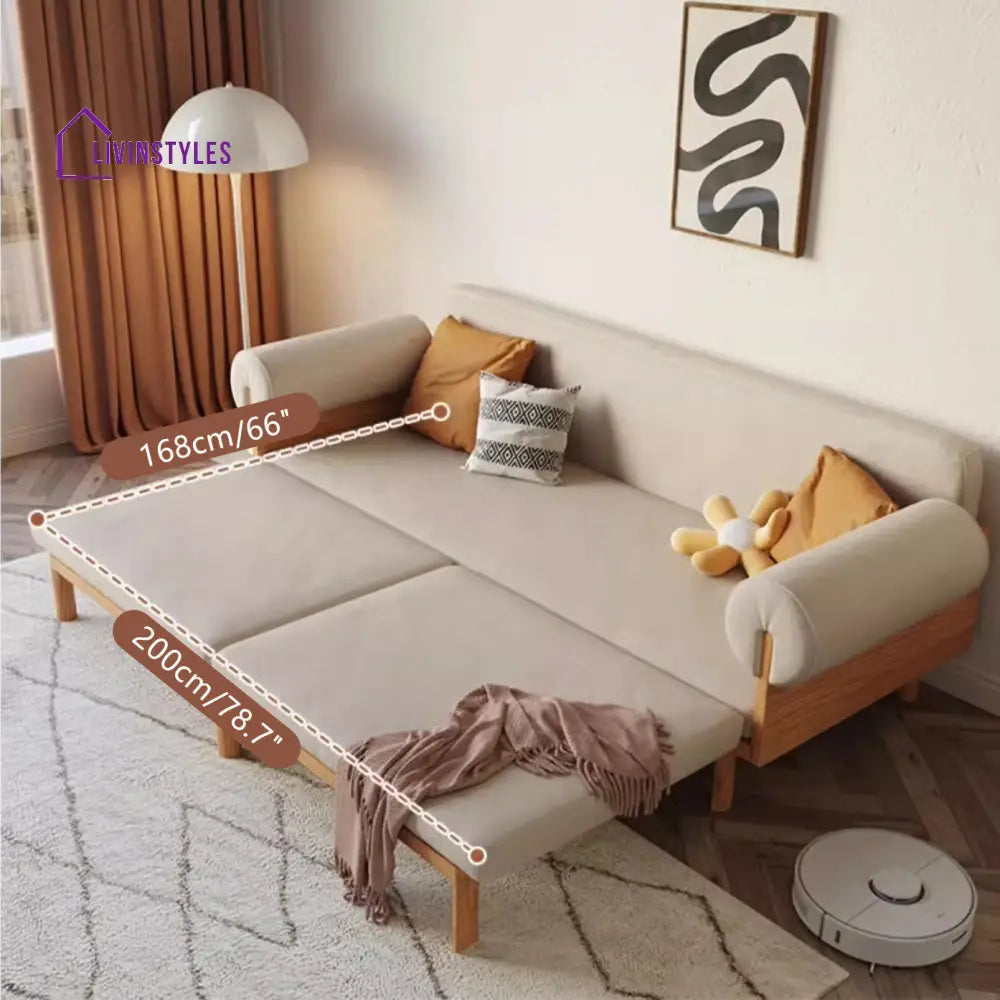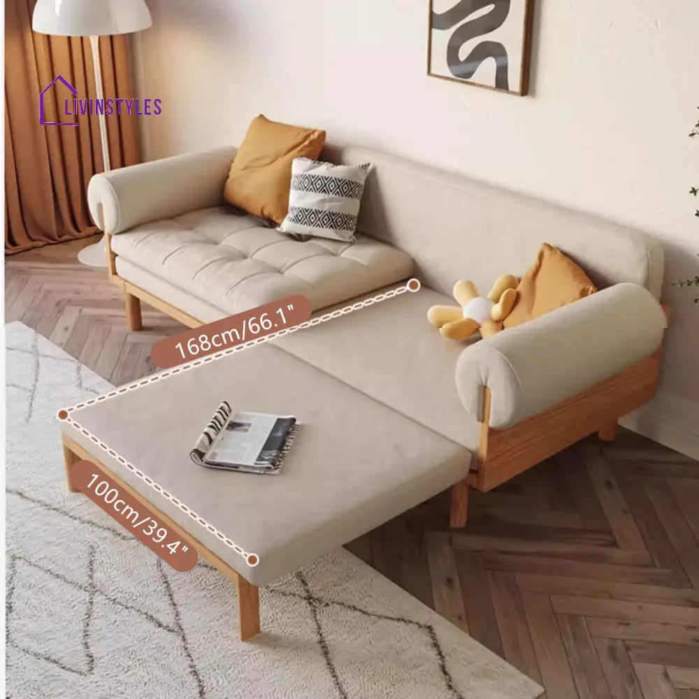 Japandi Solid Wood Recessed Arms Folding Sleeper Sofa Bed