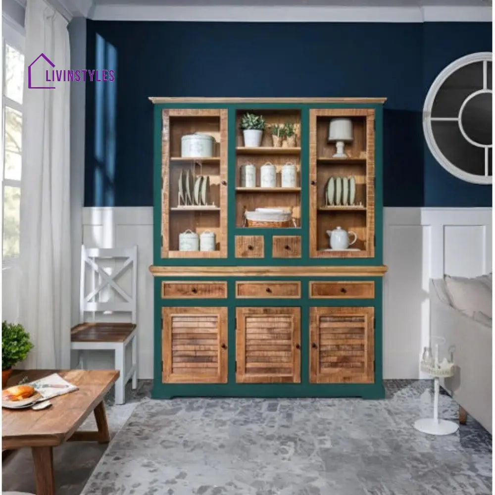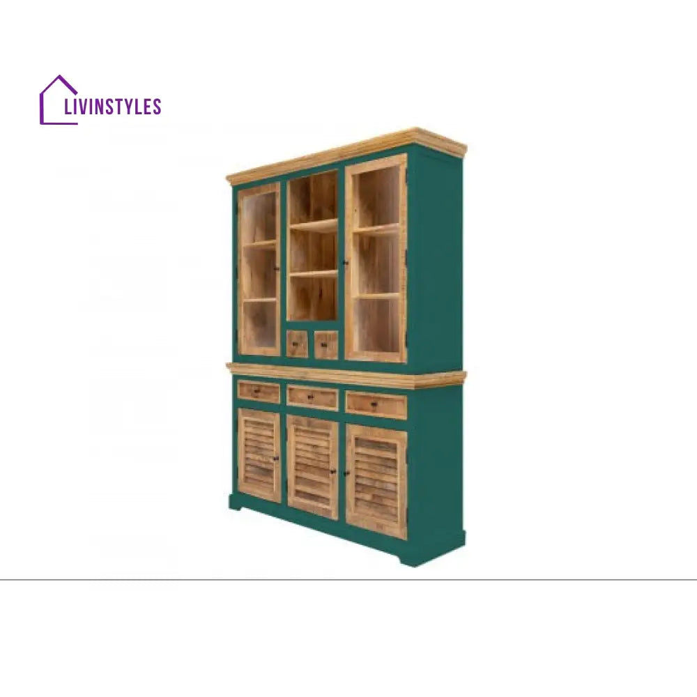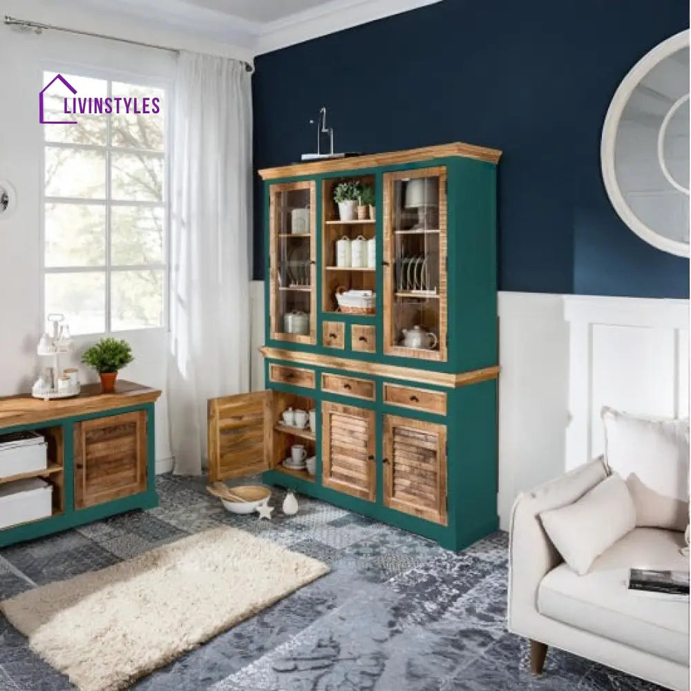 Kartik Whitewave Solid Wood Crockery Cabinet Green