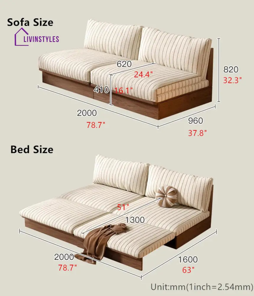 Liva Pull Out Solid Wood Sofa Come Bed