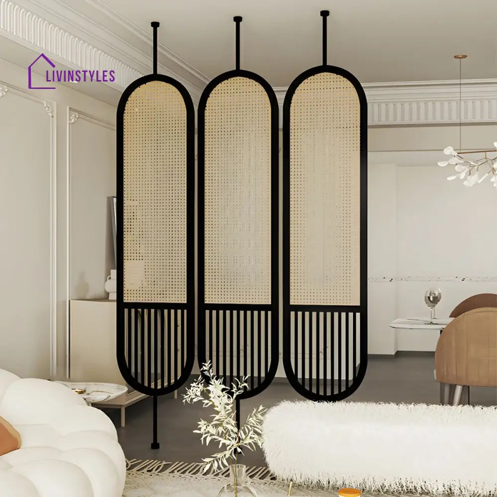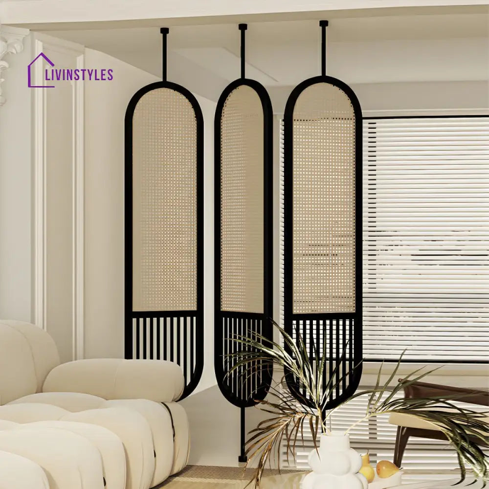 Mira Wooden and Cane Weaving Room Partition for Living Room - Single Panel